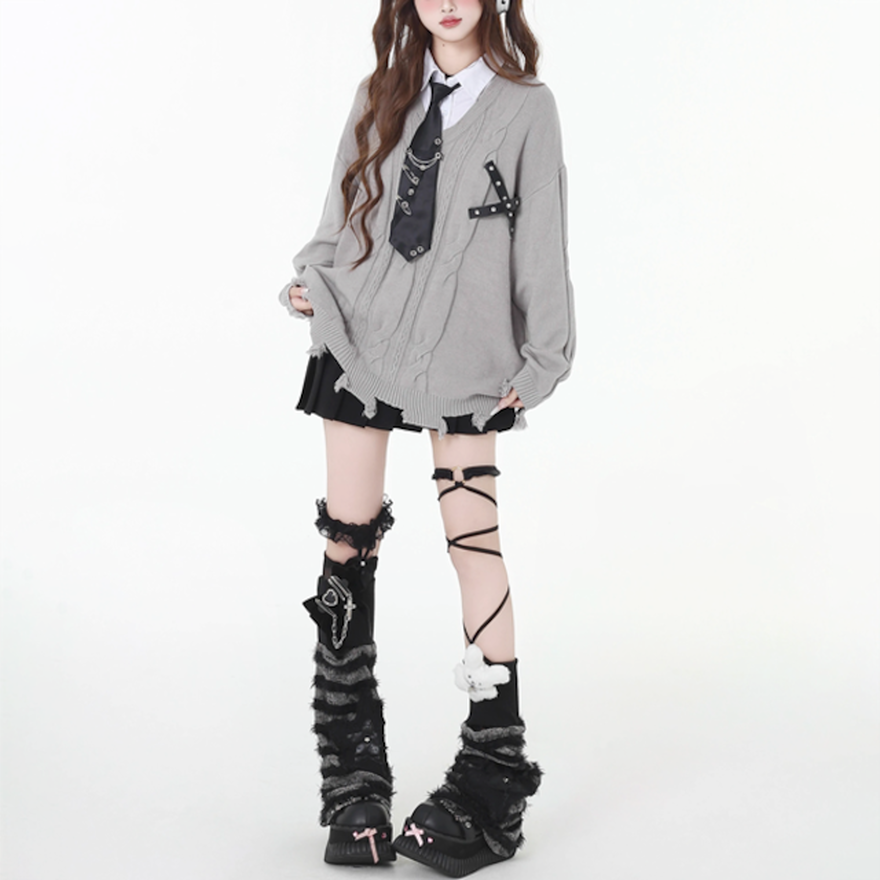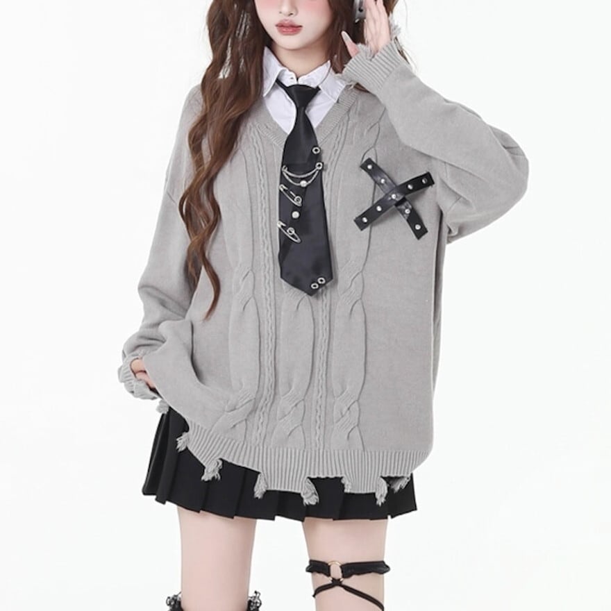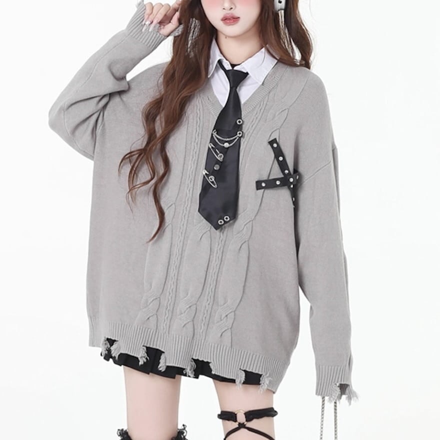 サブカル系 フェイクツーピース セーター クラッシュダメージ