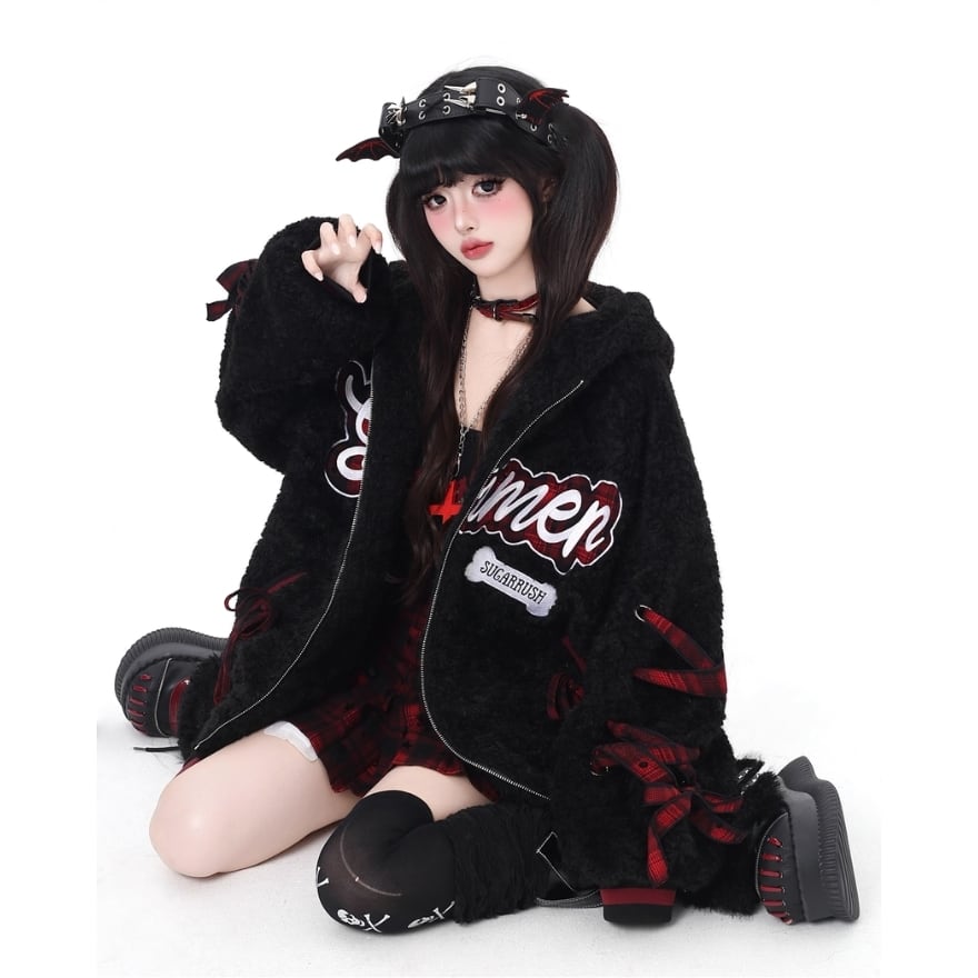 パンクロリィタ 甘辛MIX ジャケット ふわふわ ボア フーディ ロリパンファッション