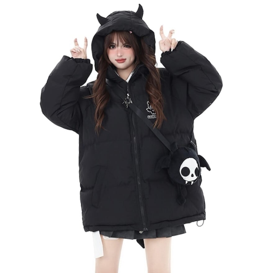 サブカル系 もこもこ ジャケット フーディ デビル パンク 甘辛MIX