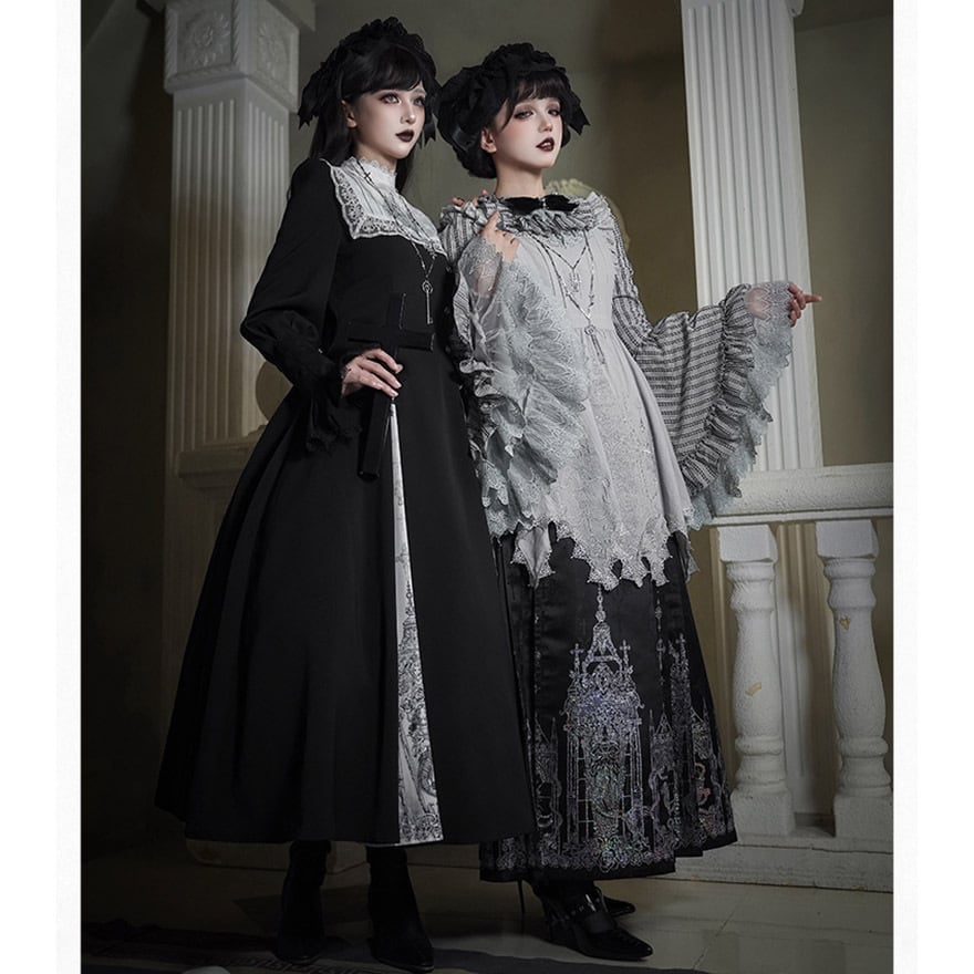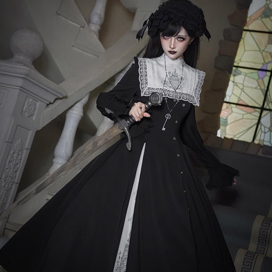 修道女や聖職者を彷彿とさせる、気品と退廃美が融合したゴシックロリータのワンピースセットです。