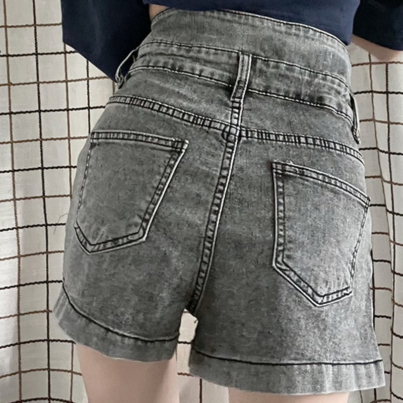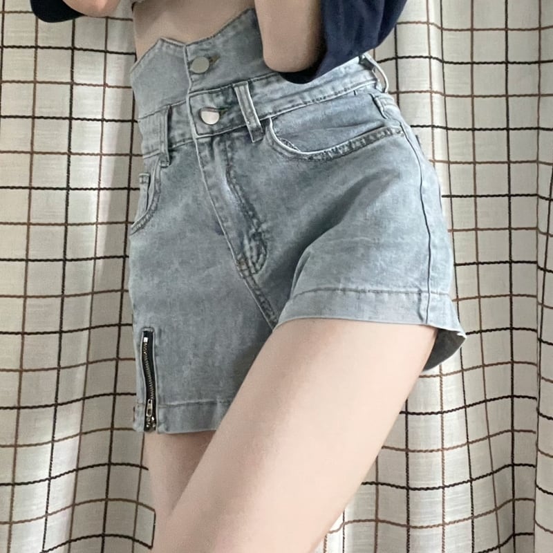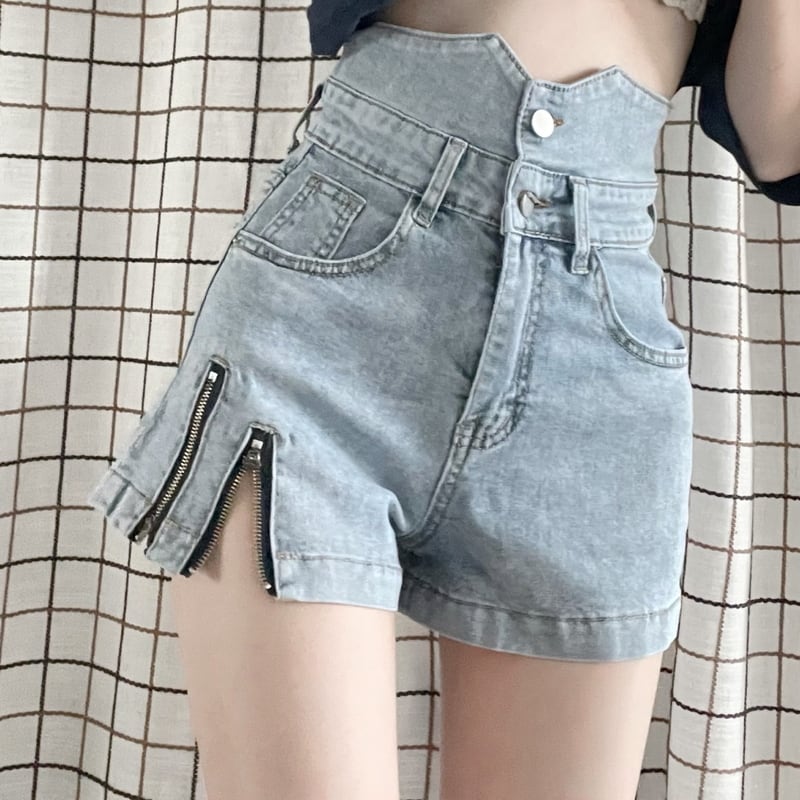 サブカル系 デニム ショートパンツ ハイウエスト スリット ZIPアップ