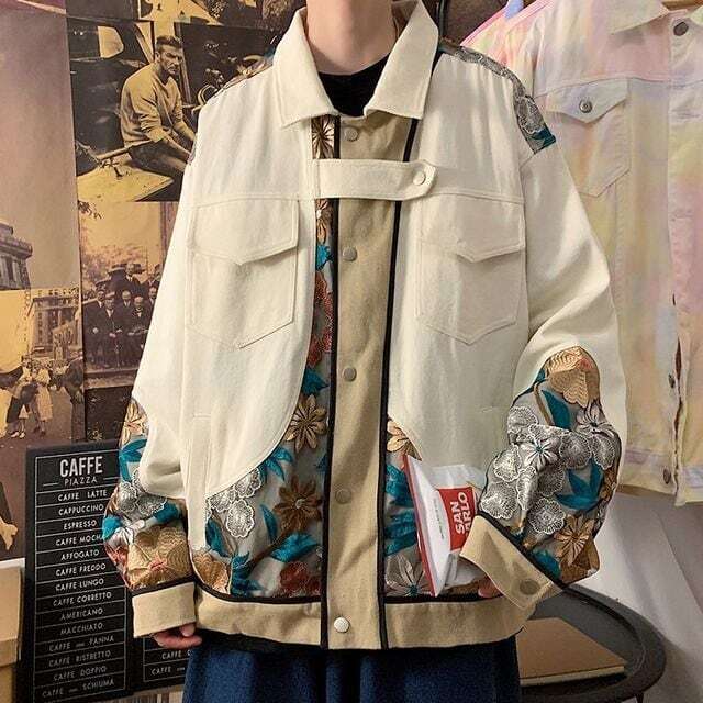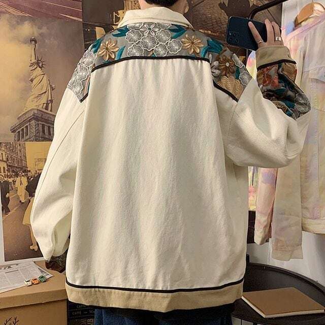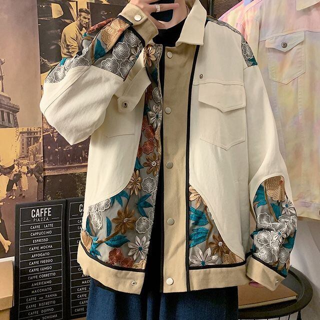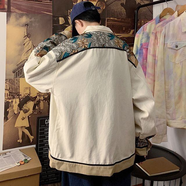 現品1点 Lサイズ ブルゾン メンズ アウター レトロ 刺繍 花柄