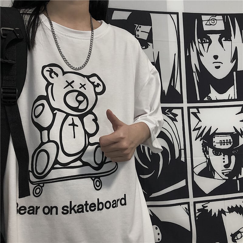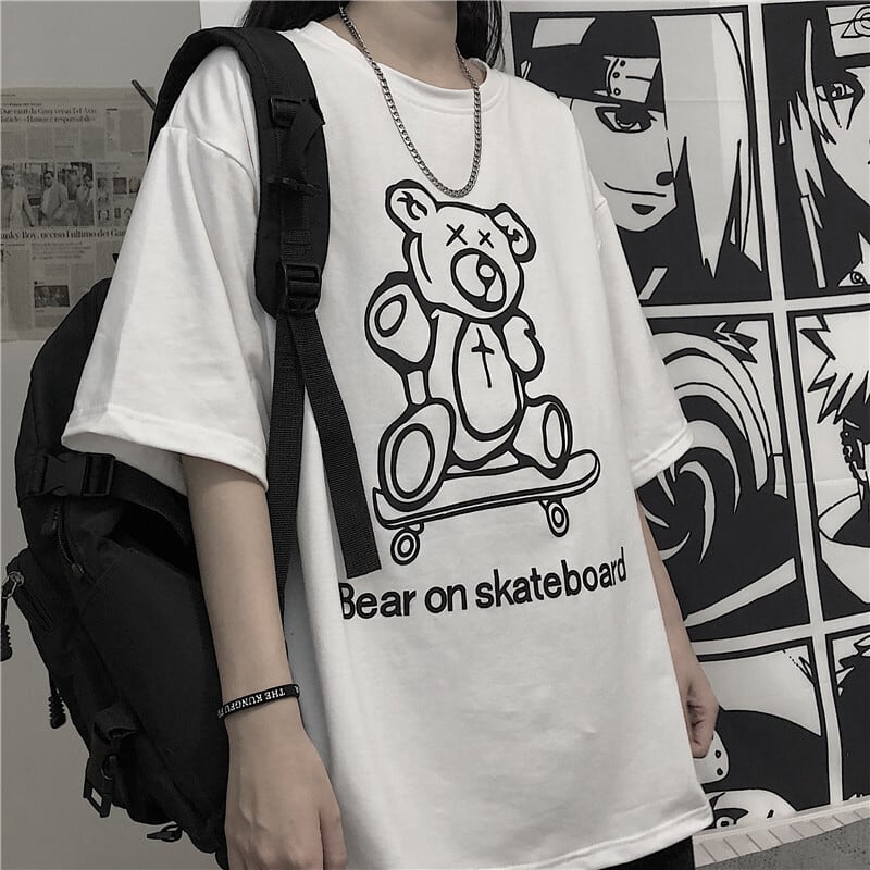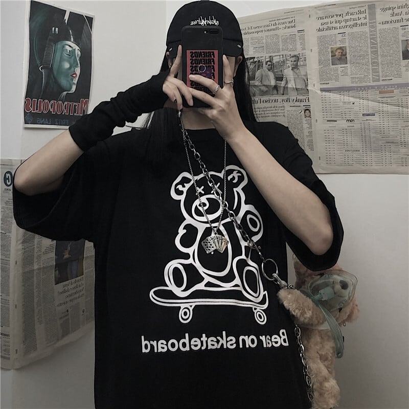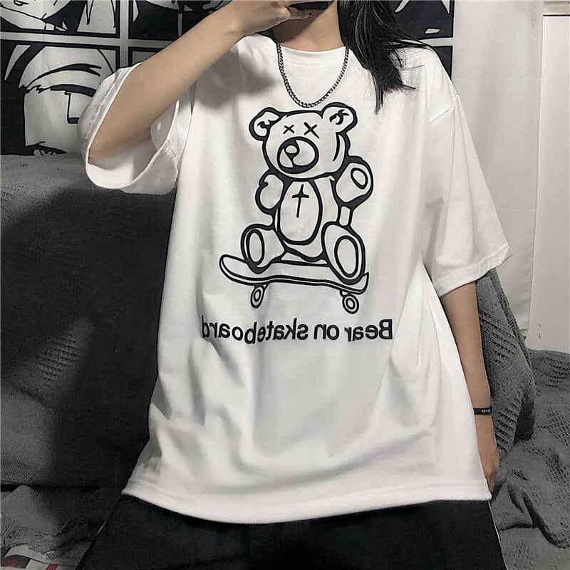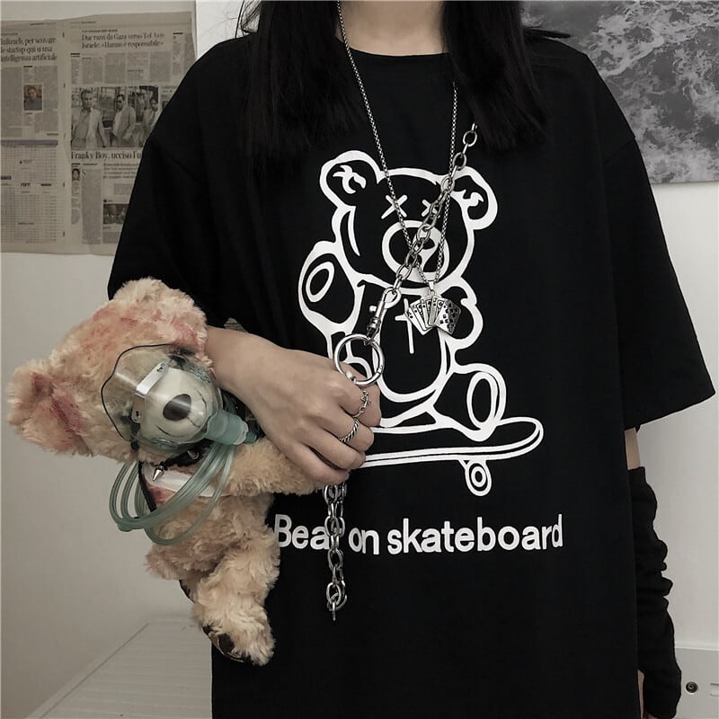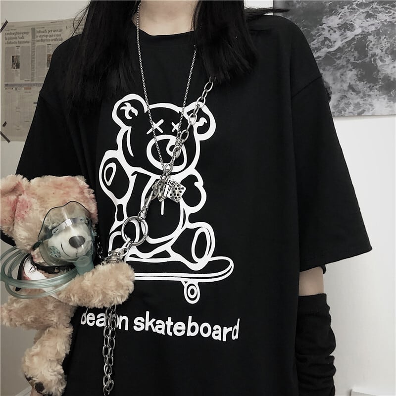 ユニセックスで着用頂ける病み可愛いくまちゃん半袖夏Tシャツです