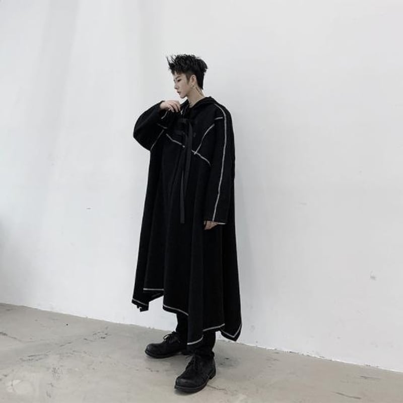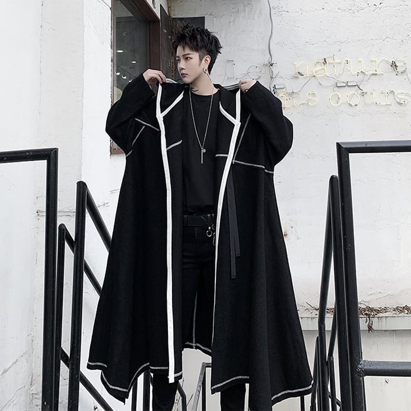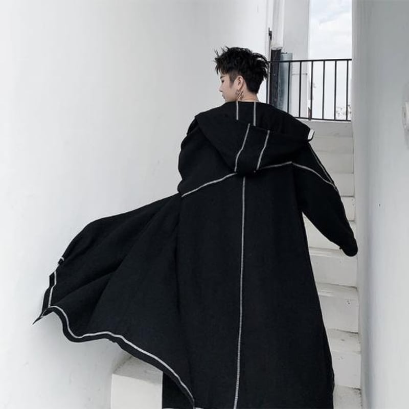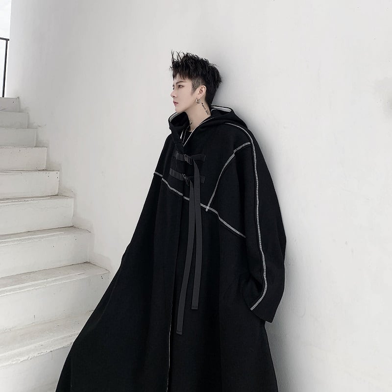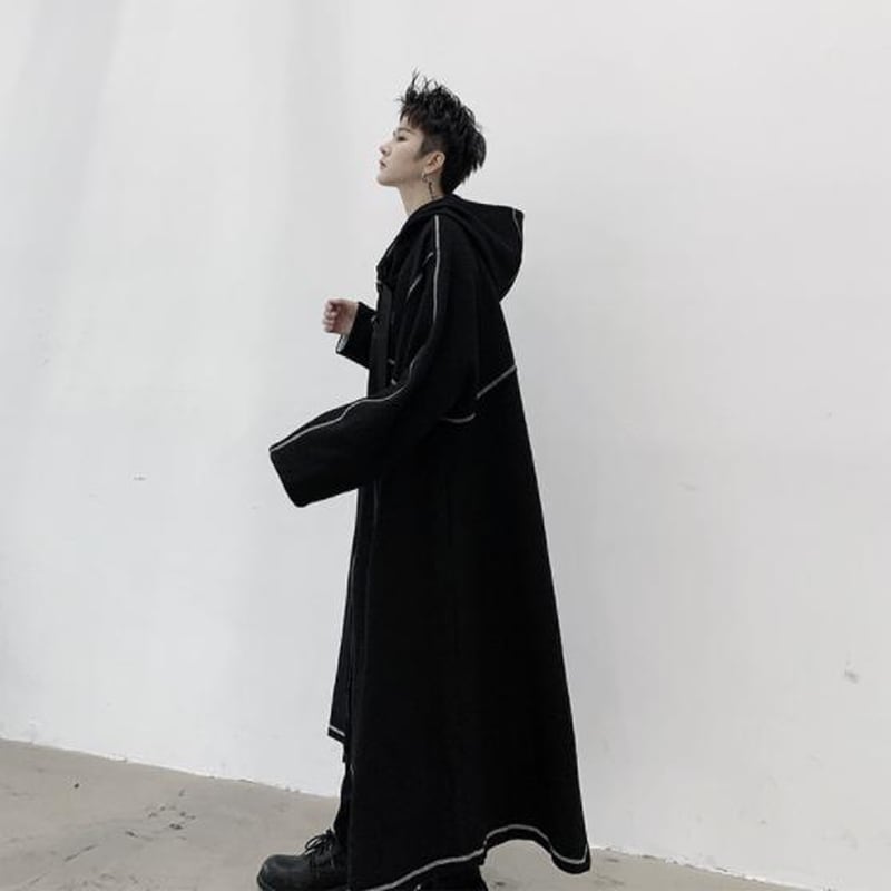 最短翌日発送 L メンズ コート フード付き ロング丈 ビッグシルエット オーバーサイズ