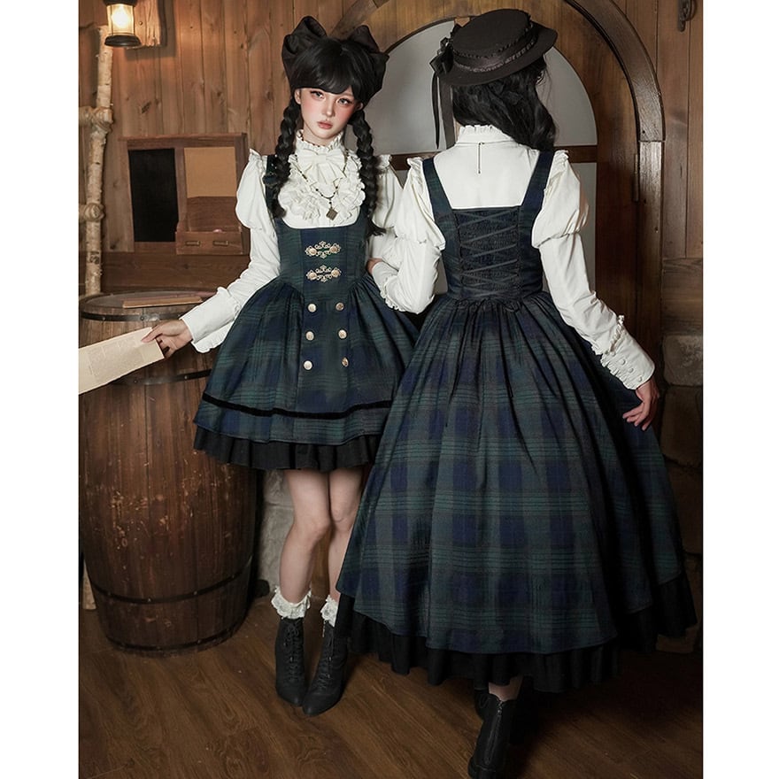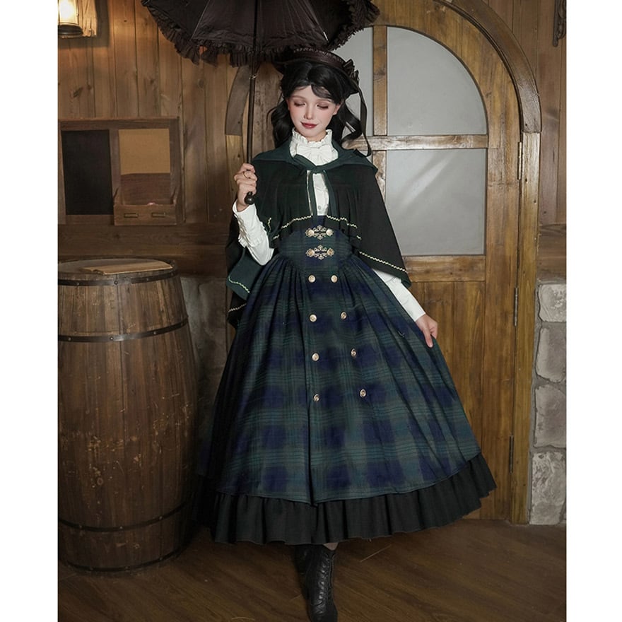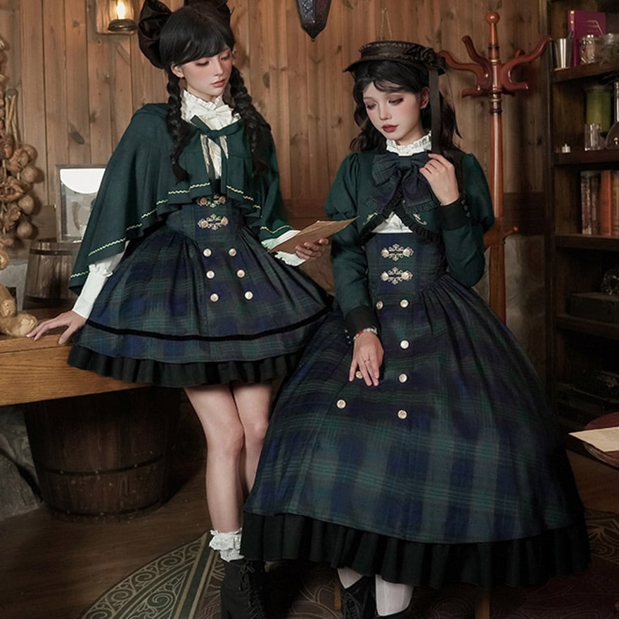 森ガール風 クラシカルロリィタ 5点セット 英国風 ロングスカート ジャンパースカート ショートジャケット チェック柄 PUJI