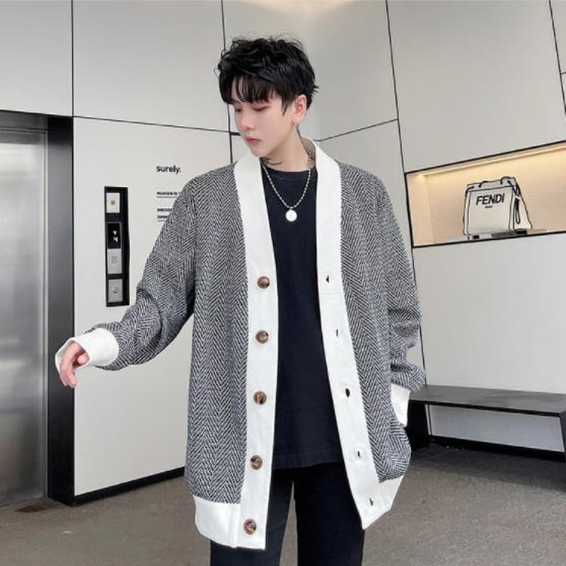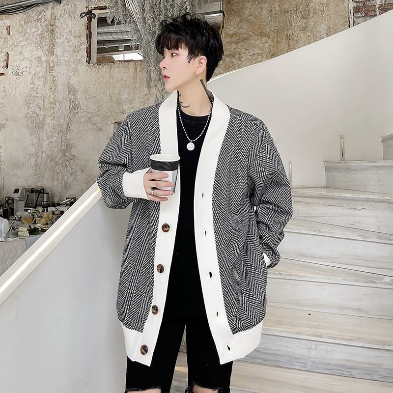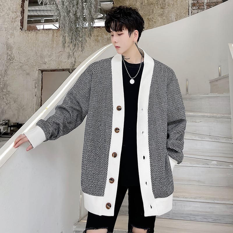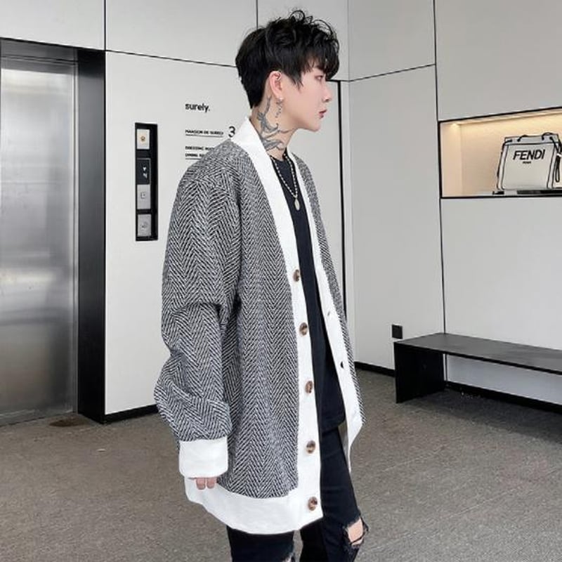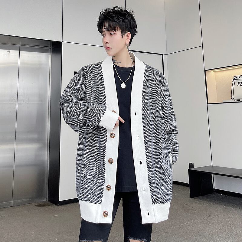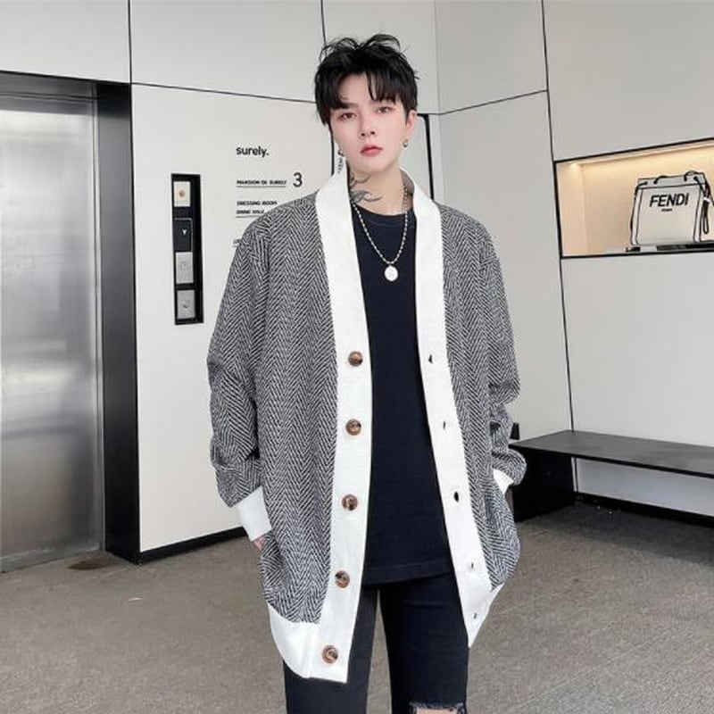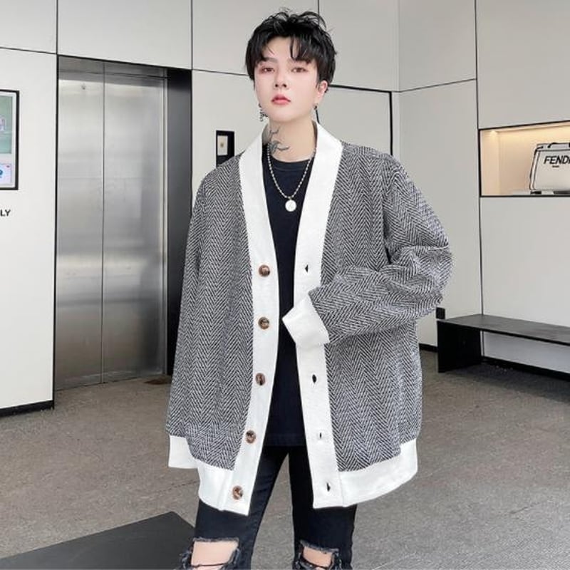 メンズ ニット カーディガン レトロ ゆったり おしゃれ オーバーサイズ ゴシック 韓国