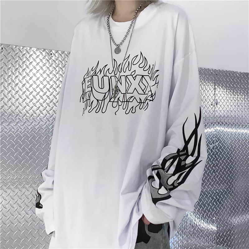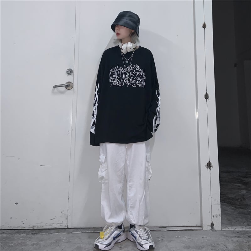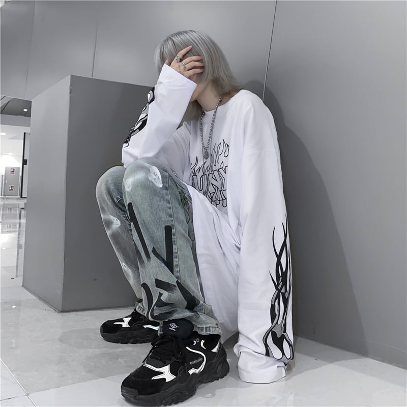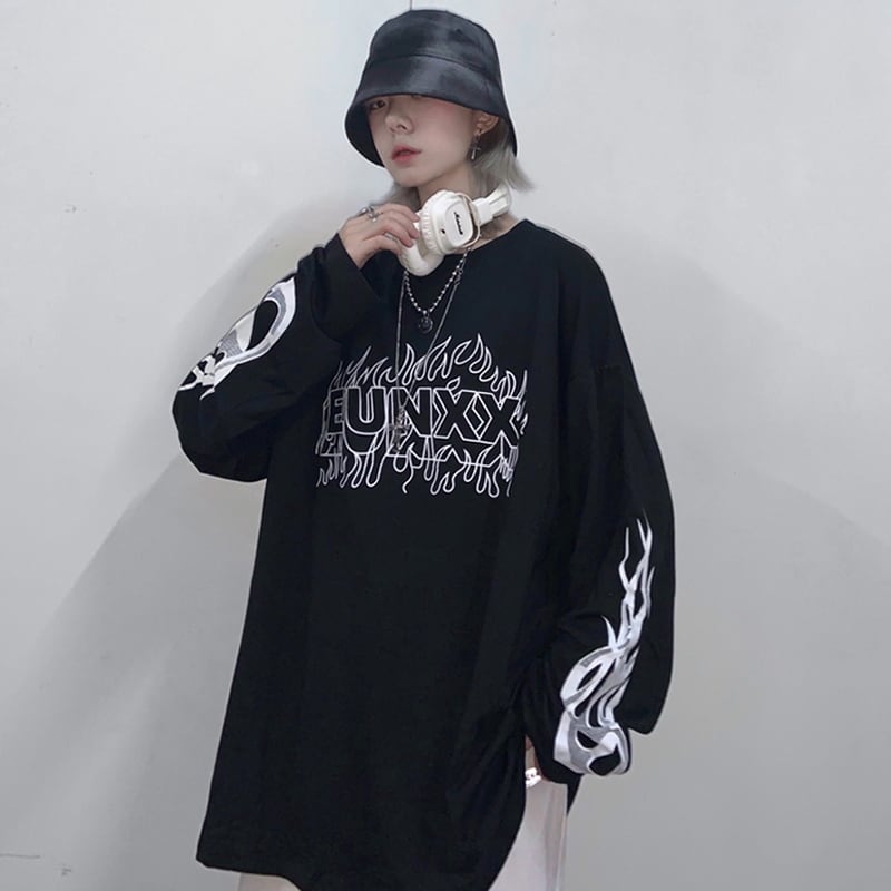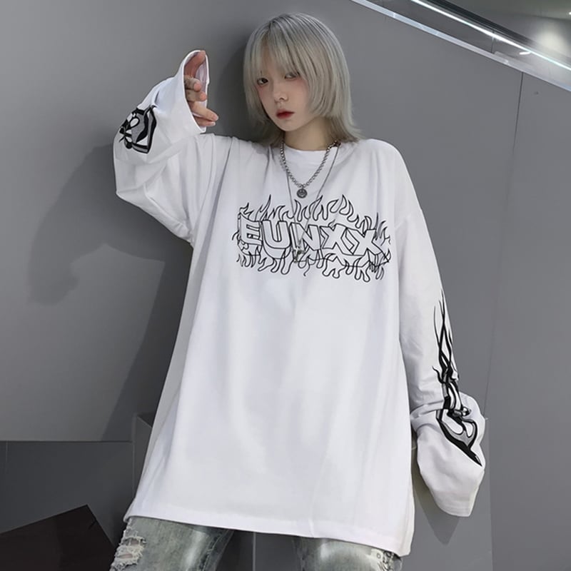 サブカル系 長袖Tシャツ プリント ユニセックス ストリートファッション