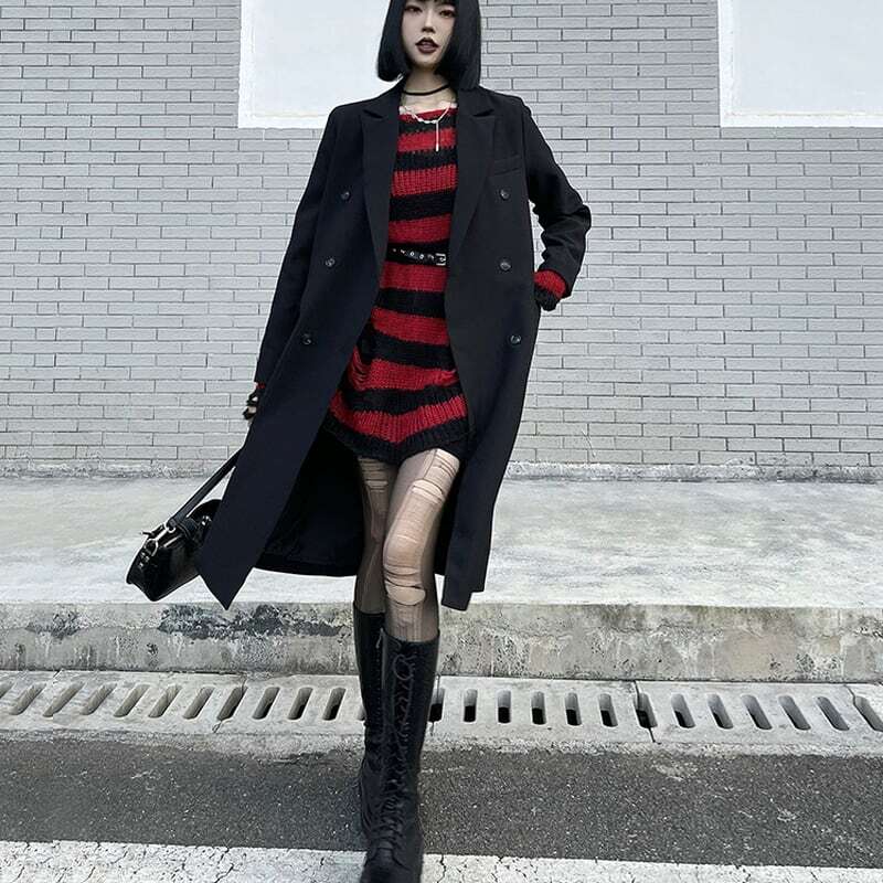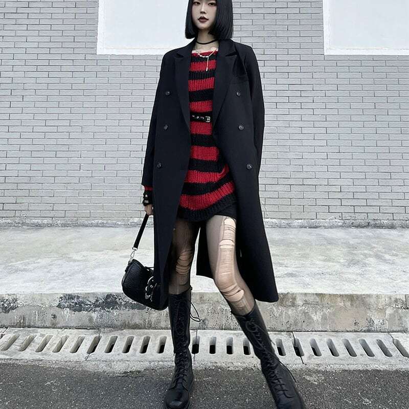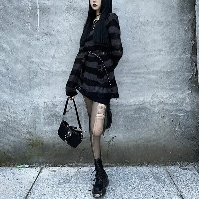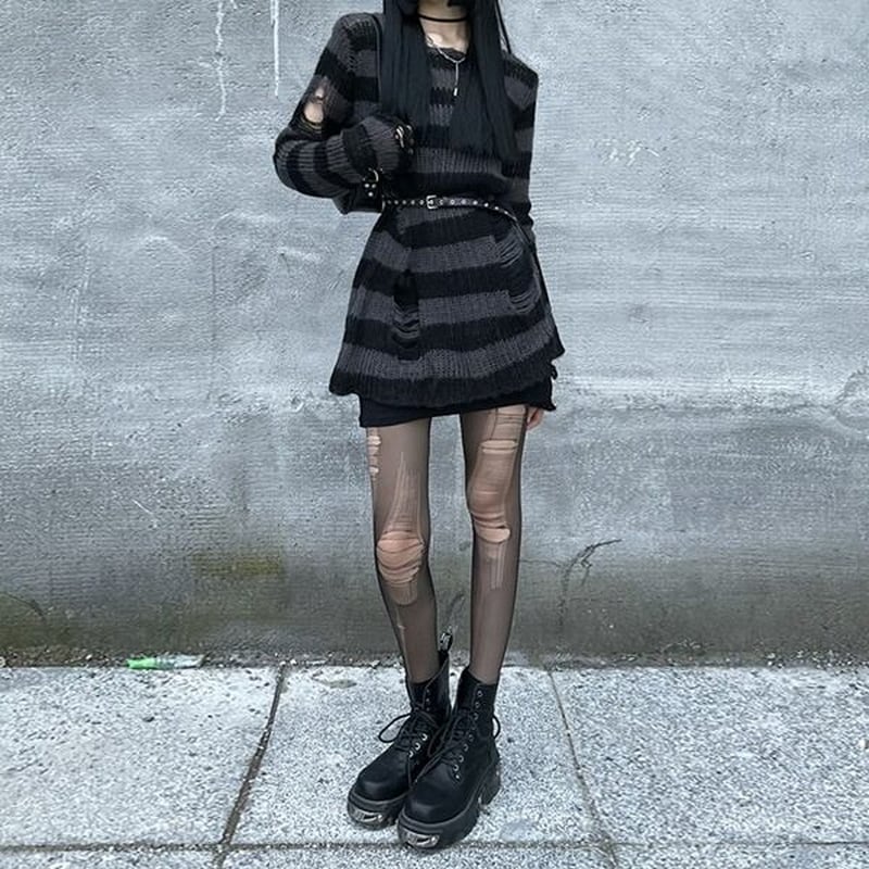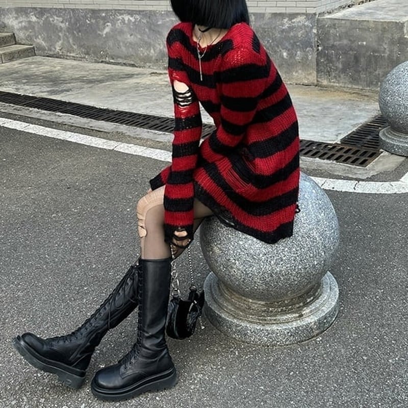 サブカル 服 地雷系 通販 ニット クラッシュ ダメージ ボーダー柄 ストリートファッション