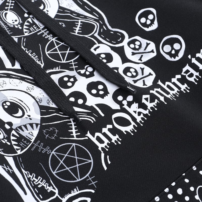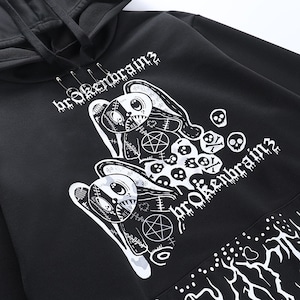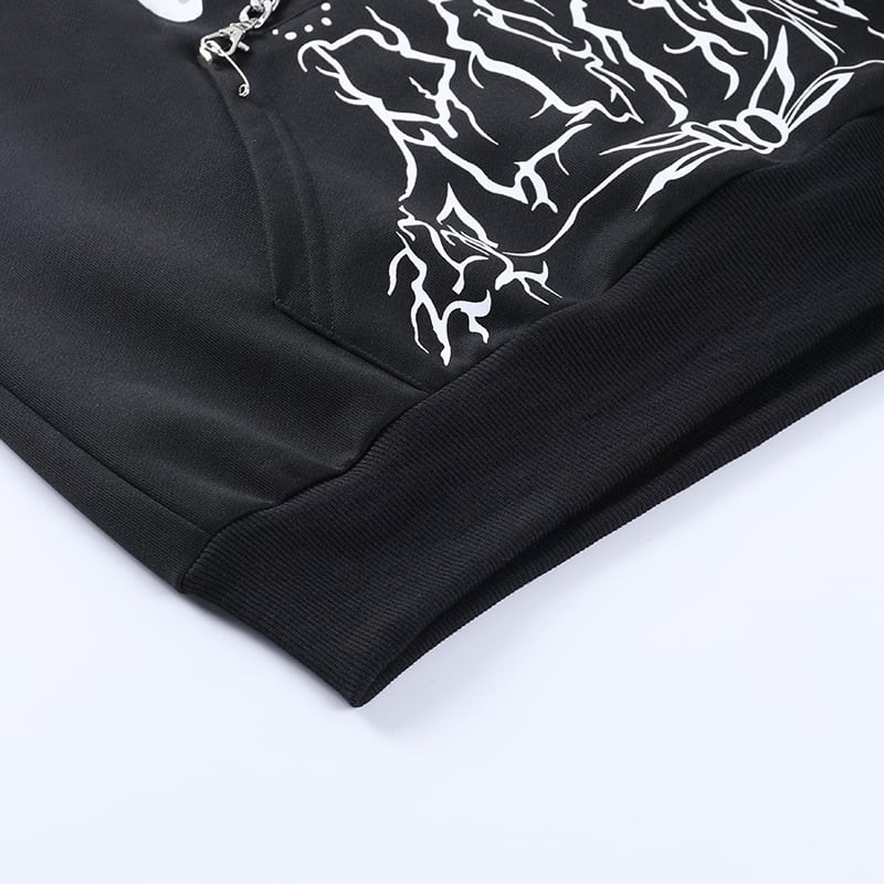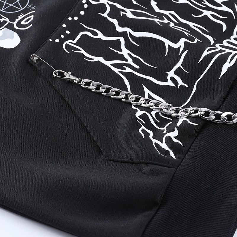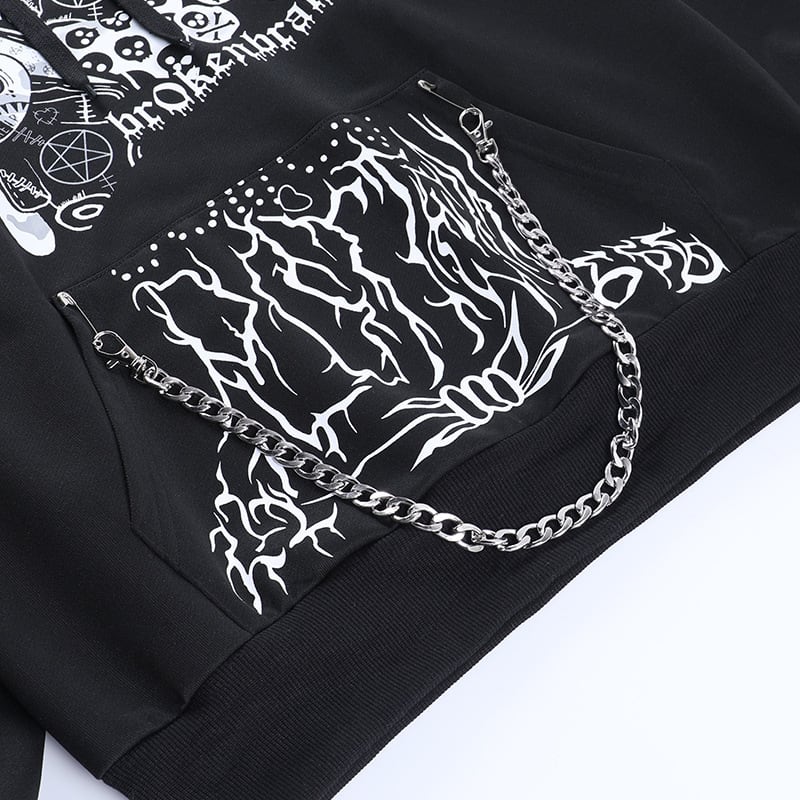 五芒星のダークなラビットにチェーンストラップ付きの黒パーカーです。