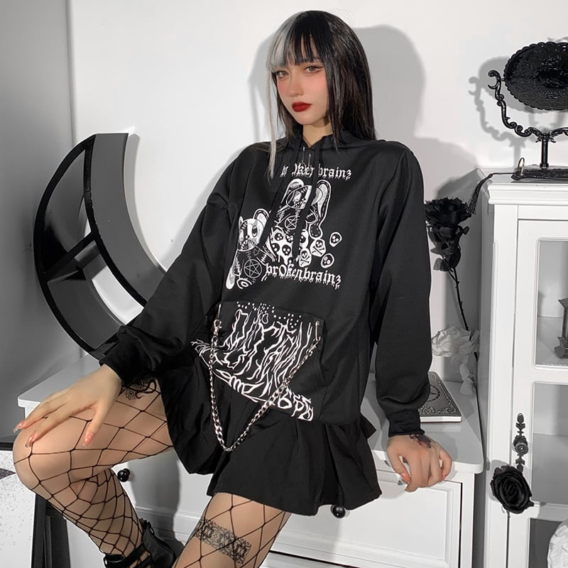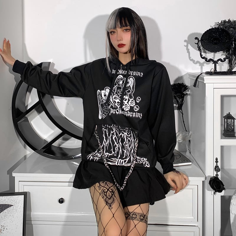 パーカー プリント ダーク バニー 病みうさぎ チェーン ゴシック ハードガール 闇かわいい