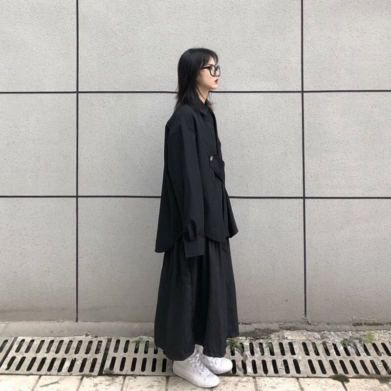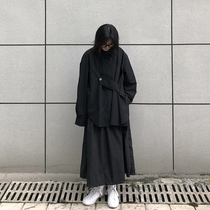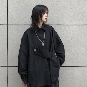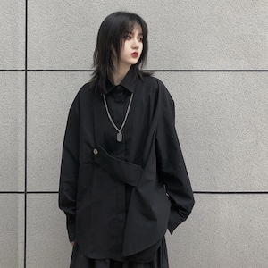 ゴシック系 黒シャツ 長袖 ビッグサイズ 闇かわいい 黒コーデ v系 20代