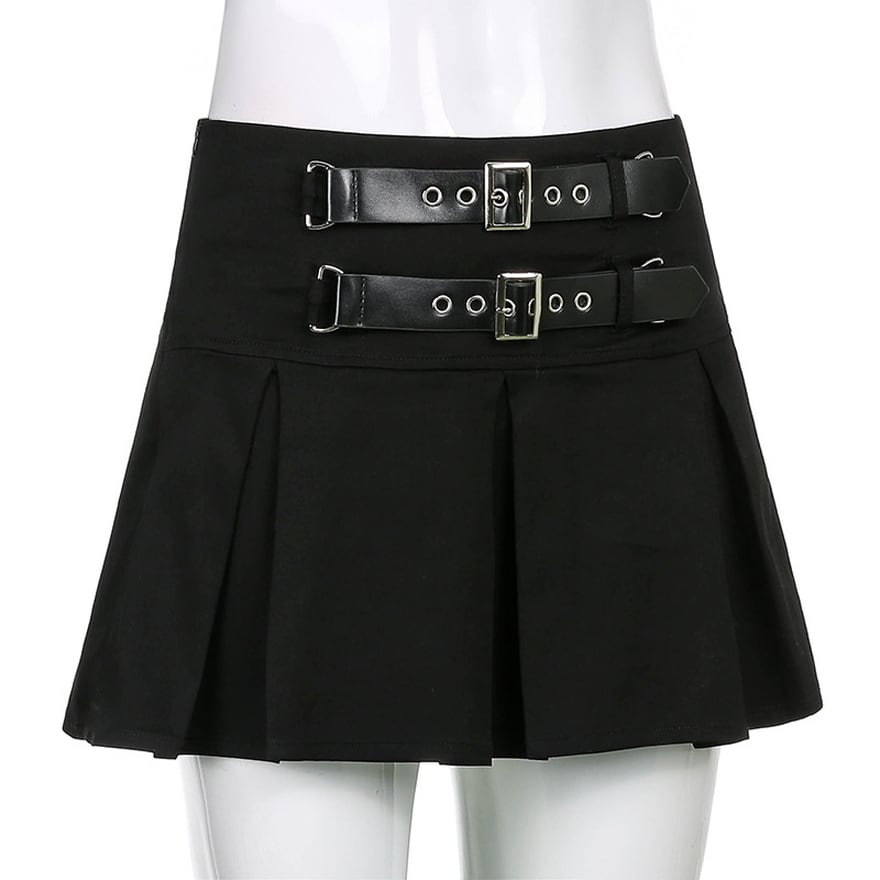 【即納】 サブカル系 ライブ 参戦服 プリーツミニ ダブルベルト ホットガール ストリート系 パンク