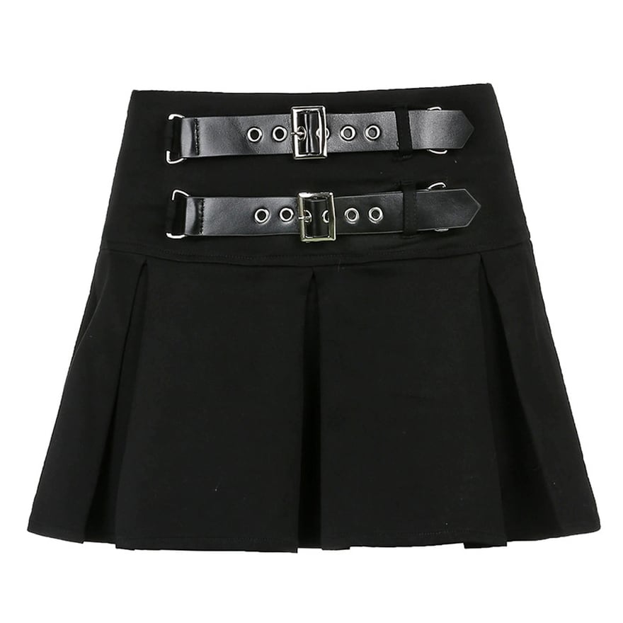 エッジの効いたビジュアルインパクト抜群なダブルベルトがおしゃれなプリーツミニです。