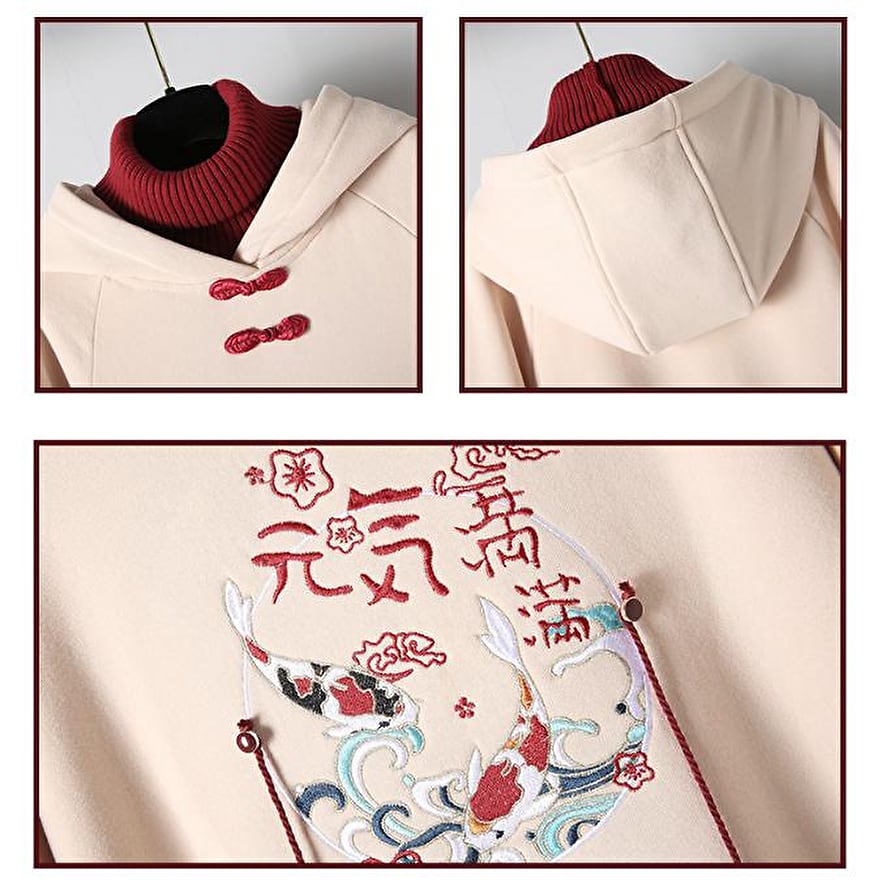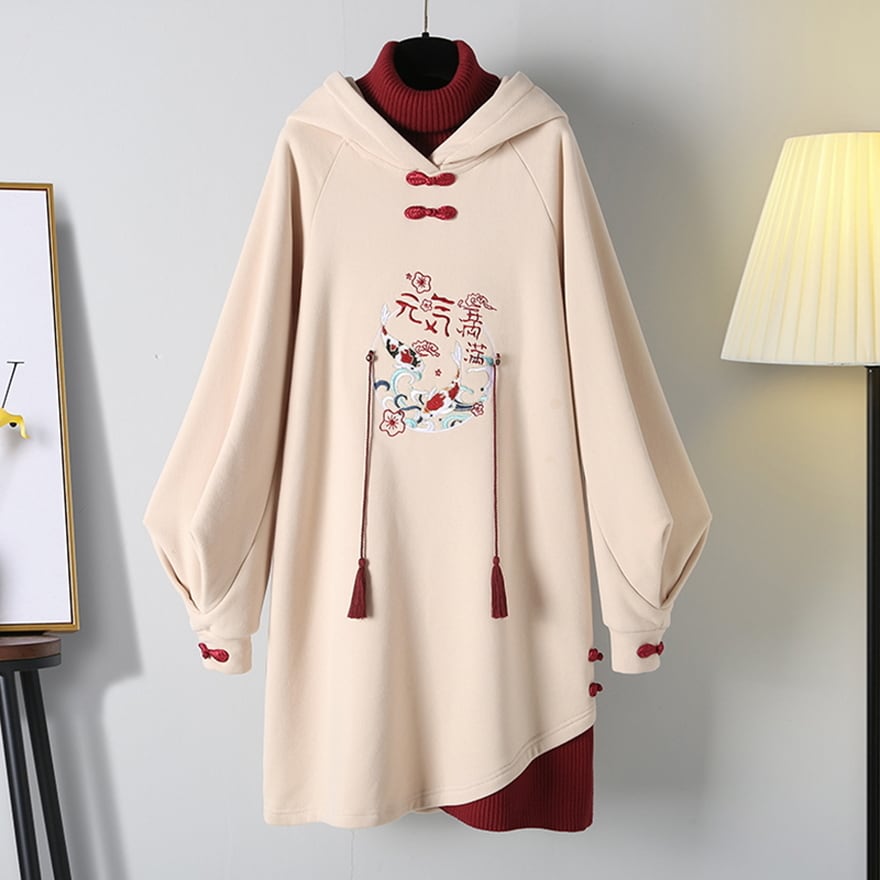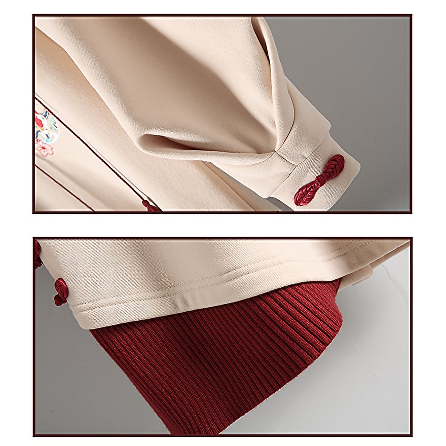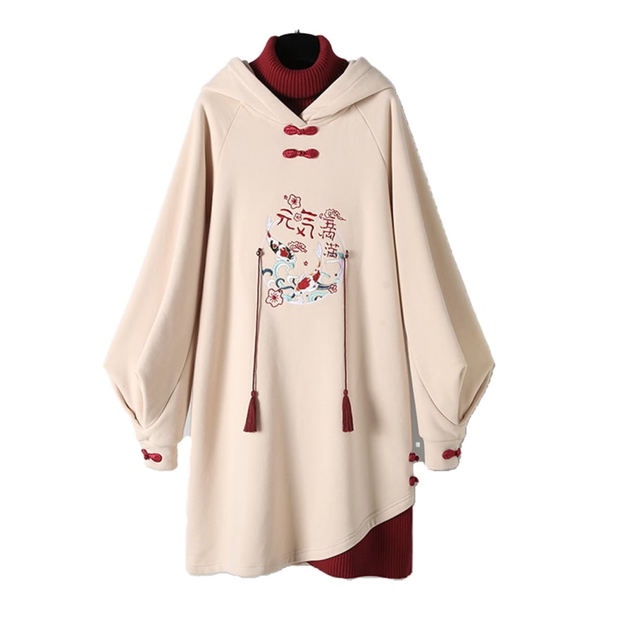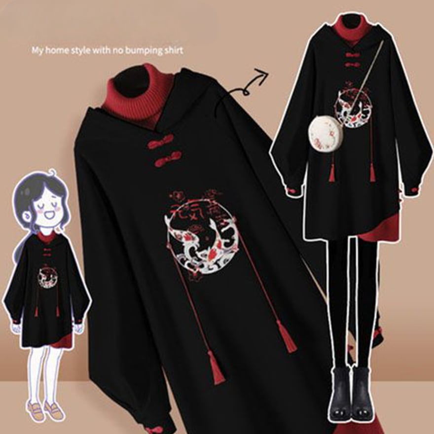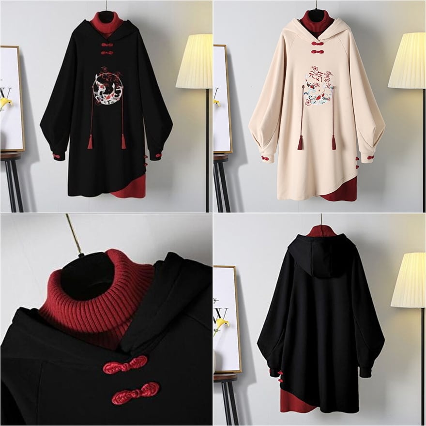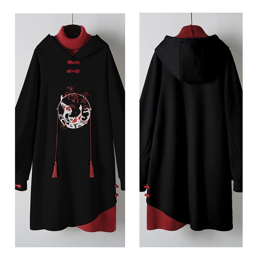 【即納ブラック】 サブカル系地雷 中華ゴシック ロングパーカー フェイクツーピース 刺繍