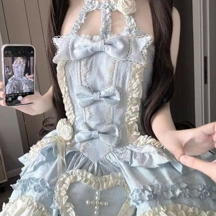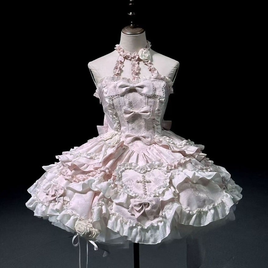 プリンセス ホルターネックドレス 甘ロリ レイヤードスカート フリル