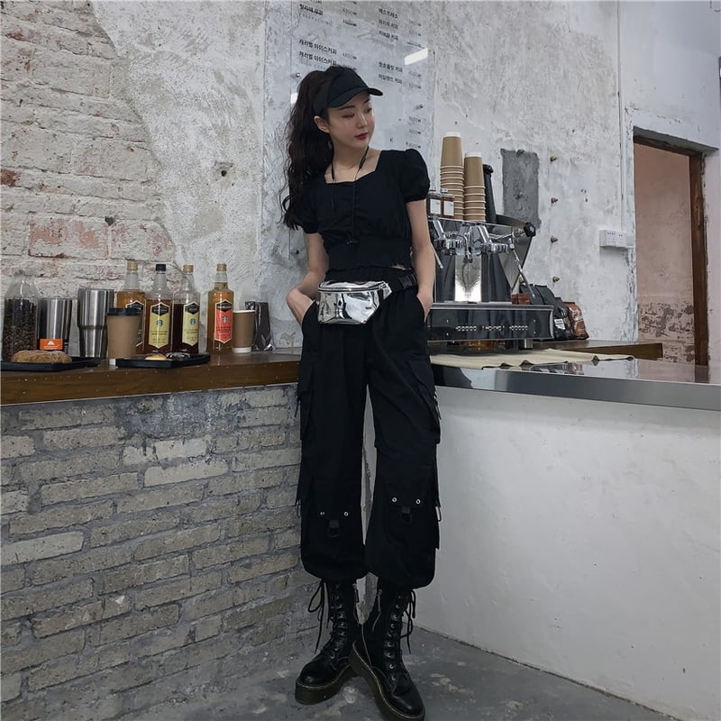 サブカル系 ミリタリー パラシュートパンツ 厚手 ユニセックス サイドポケット ストリートファッション