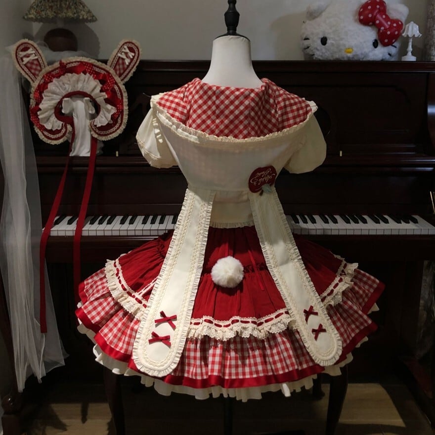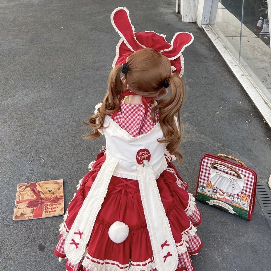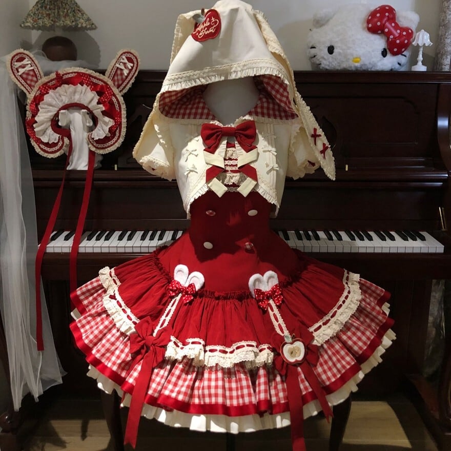 関連キーワード: #ロリータ #ロリータファッション #甘ロリ #ジャンパースカート #ジャケット #セットアップ #うさ耳 #りんご #ギンガムチェック #可愛い