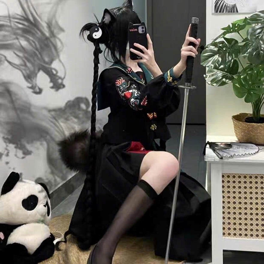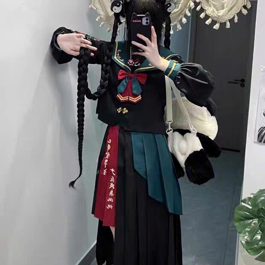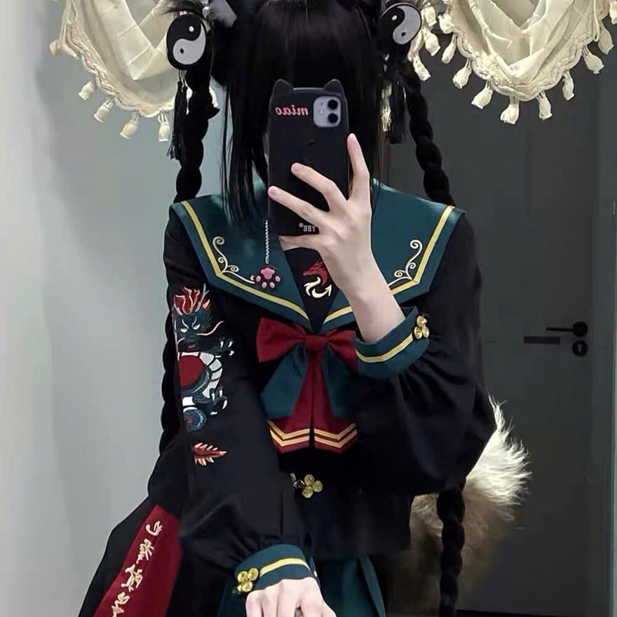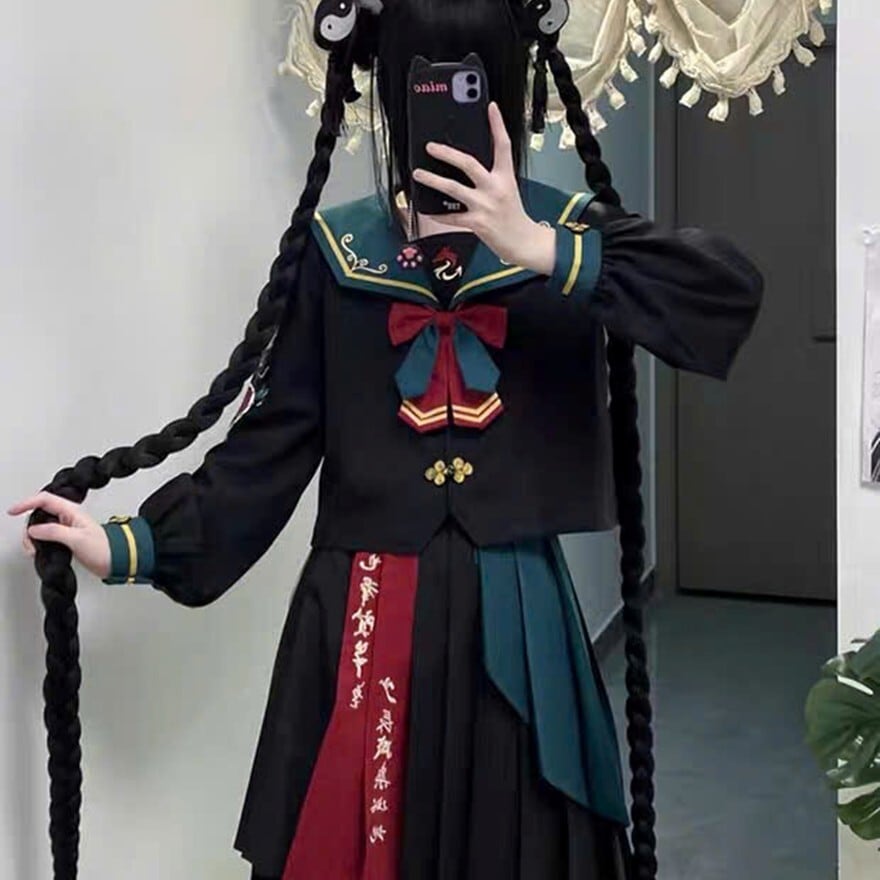 天使と悪魔 地雷系 中華風セーラー服 セットアップ 長袖 刺繍 不良少女 イベント衣装