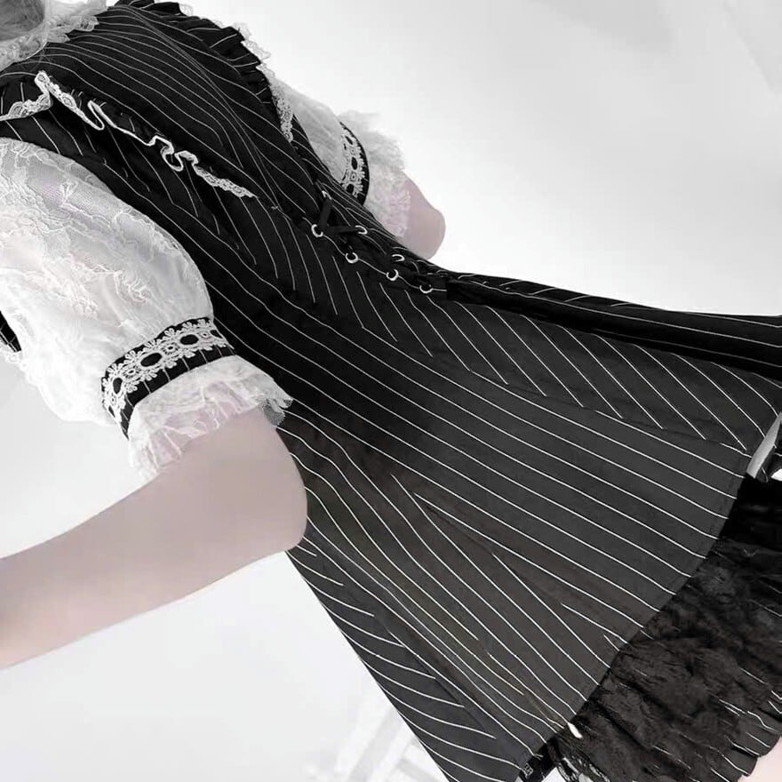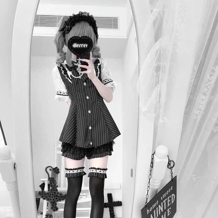 関連キーワード: #セットアップ #ロリータ #ストライプ #モノトーン #リボン #パール #量産型 #地雷系 #ドーリー #可愛い