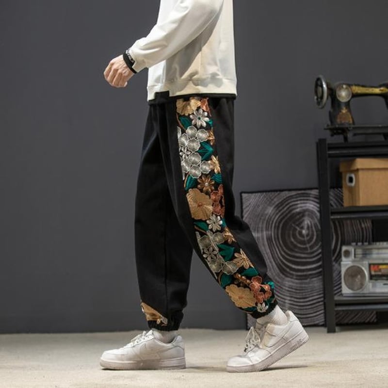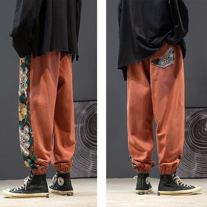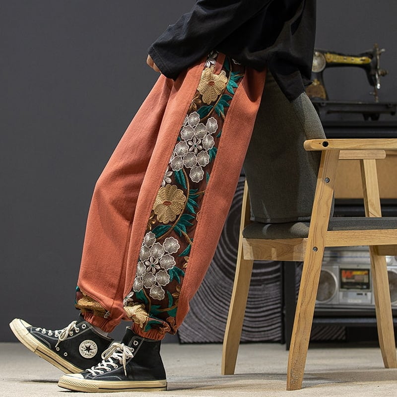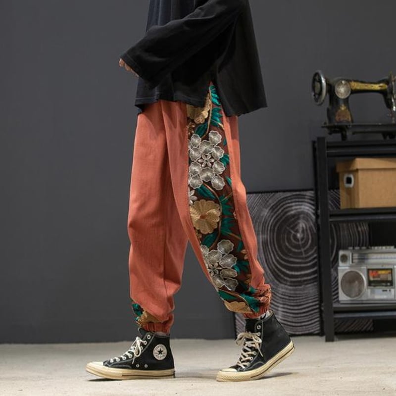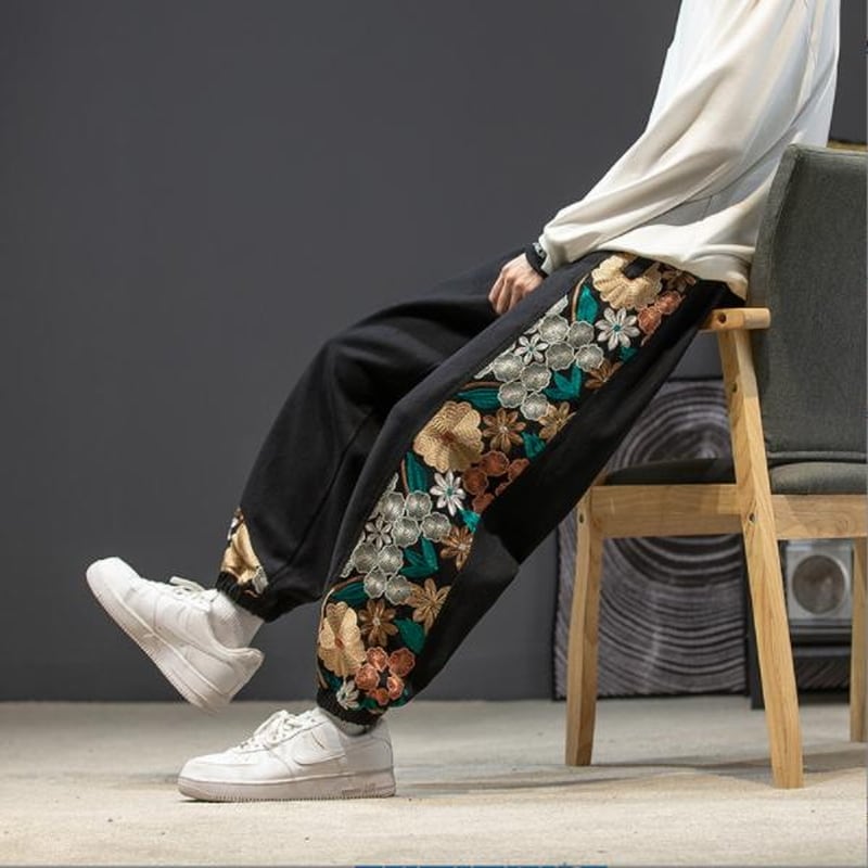 花柄刺繍がビジュアル抜群なメンズイージーパンツ