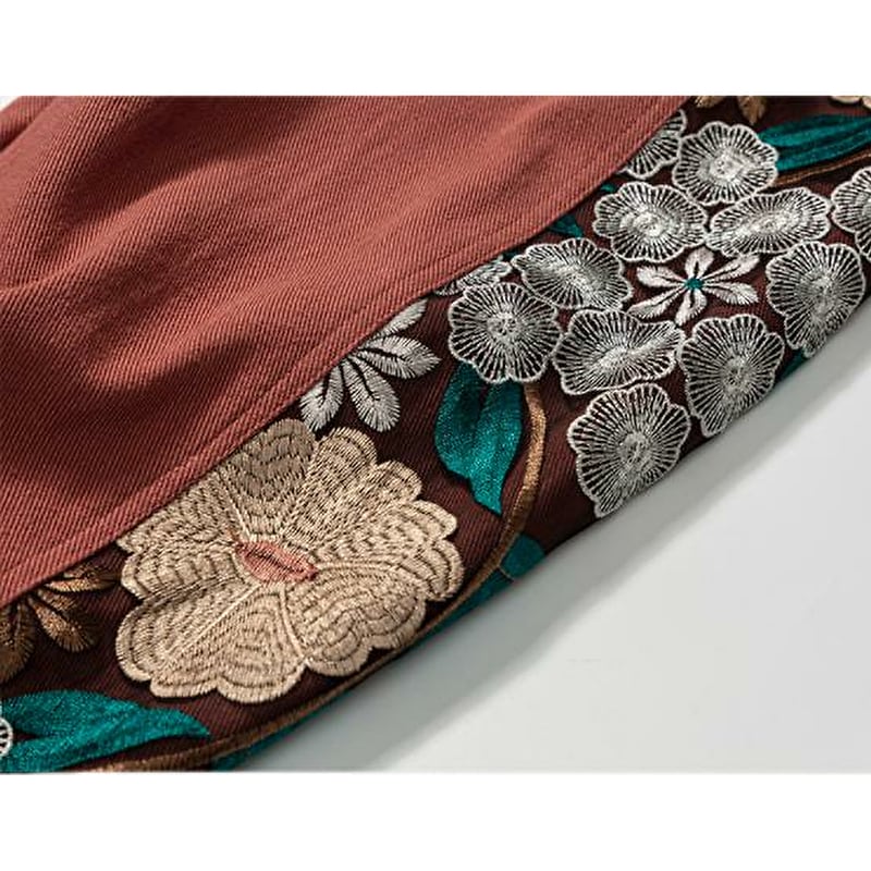【即納 ベージュL】メンズ パンツ コットン 厚手 花柄刺繍 イージーパンツ レトロ