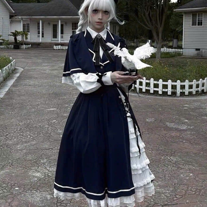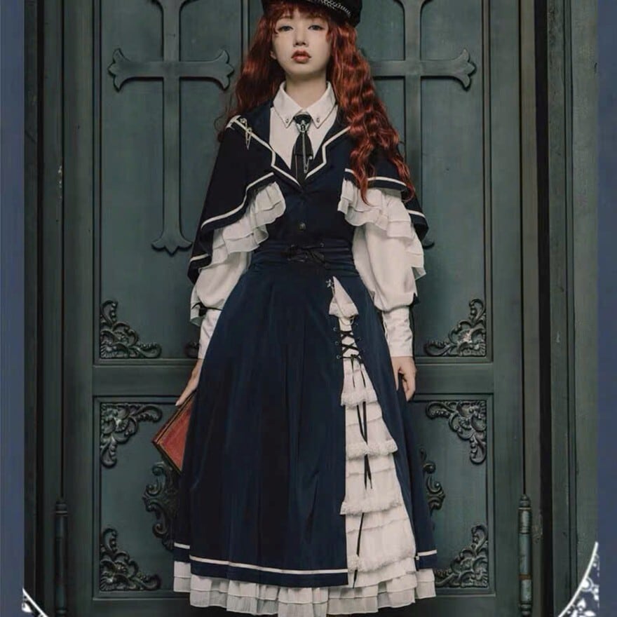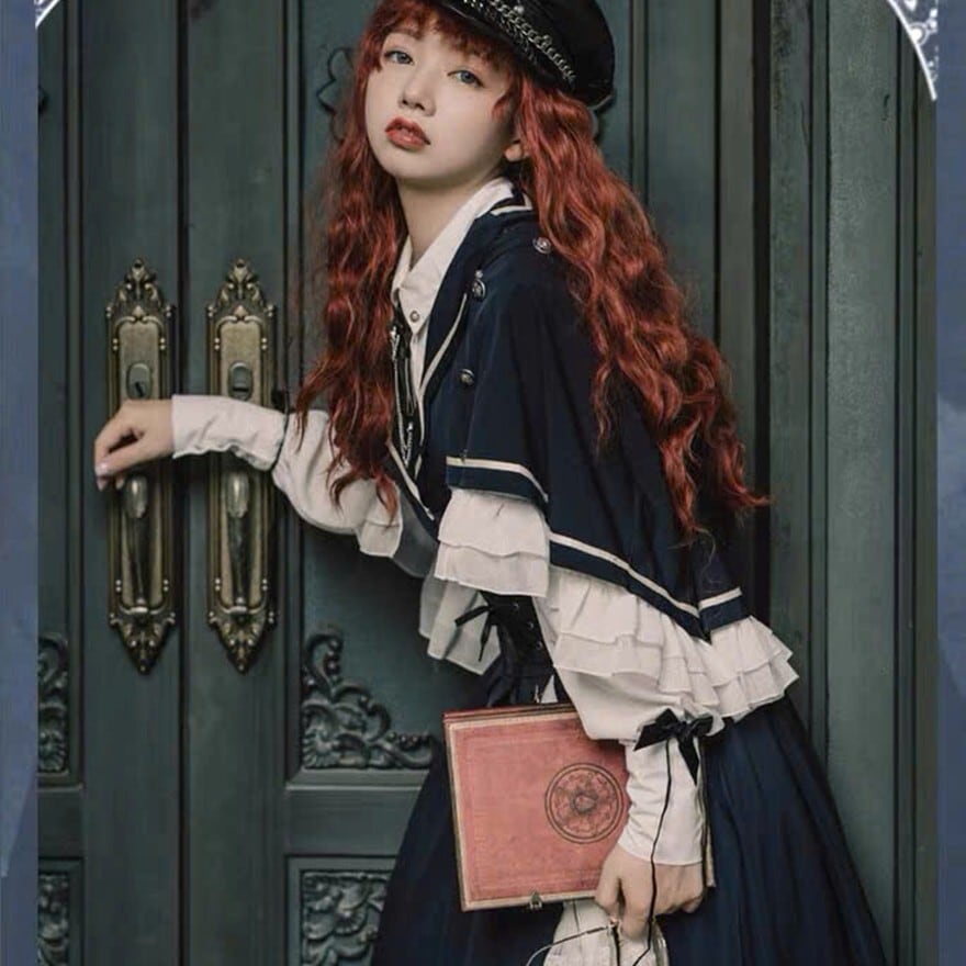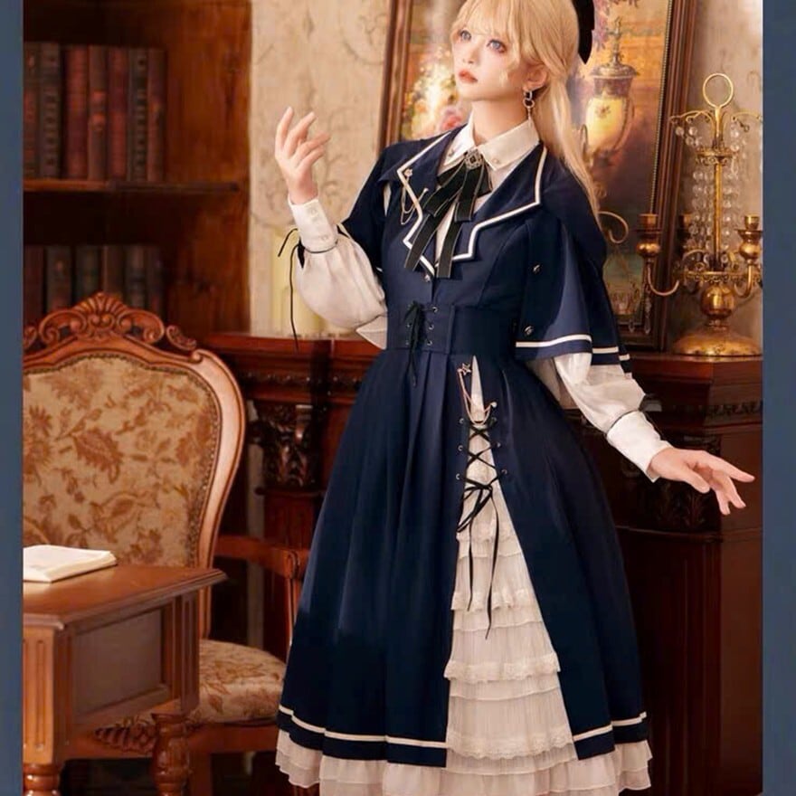 関連キーワード: #ロリータ #クラロリ #ミリロリ #セットアップ #ネイビー #制服 #ケープ #エレガント #シック #可愛い