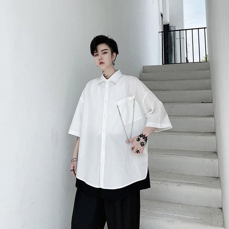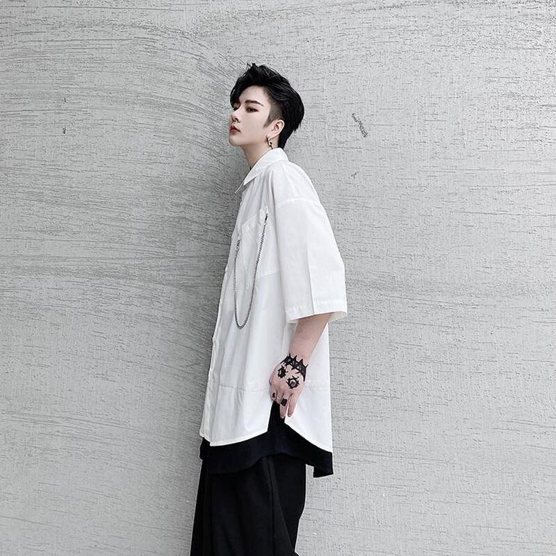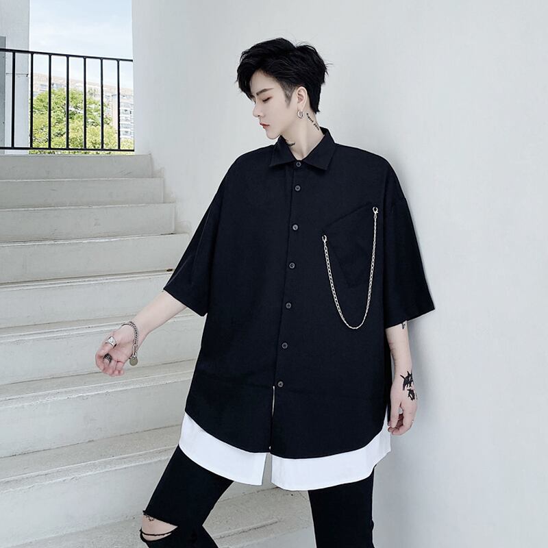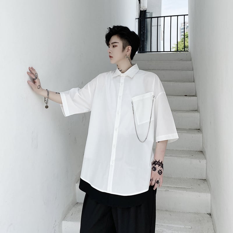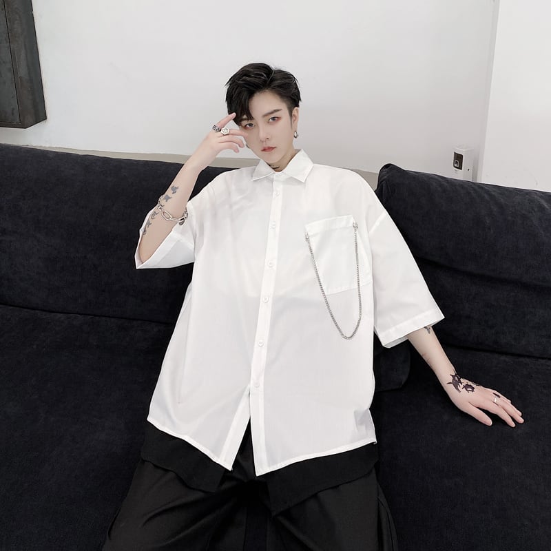 【即納】メンズモード系 デザインシャツ チェーンストラップ