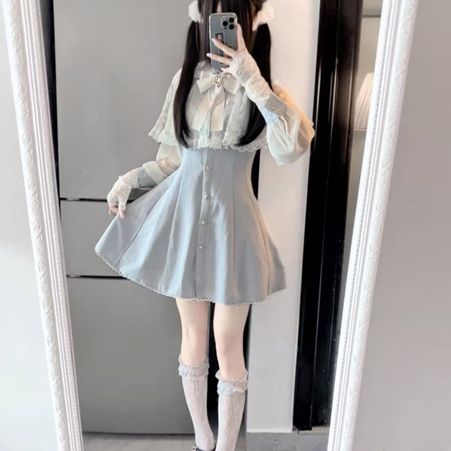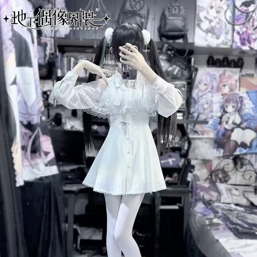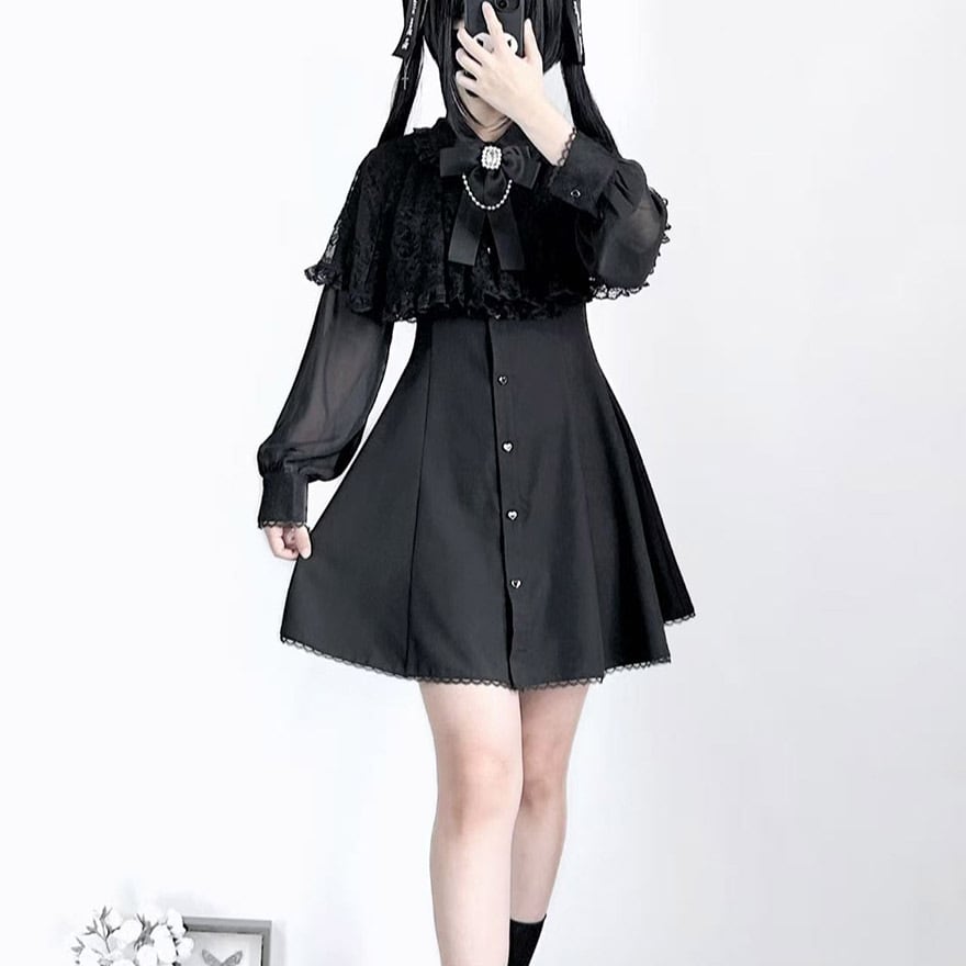 関連キーワード: #地雷系 #量産型 #天使界隈 #サブカル #ワンピース #ケープ #レース #フレアスカート #可愛い #参戦服 #双子コーデ