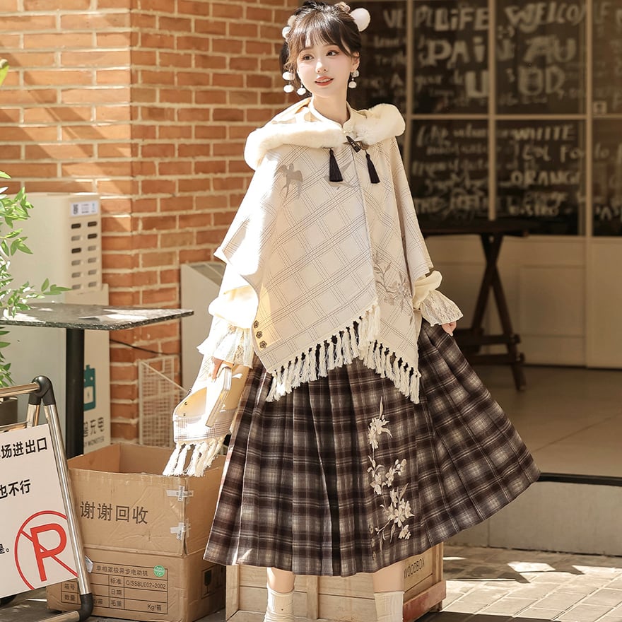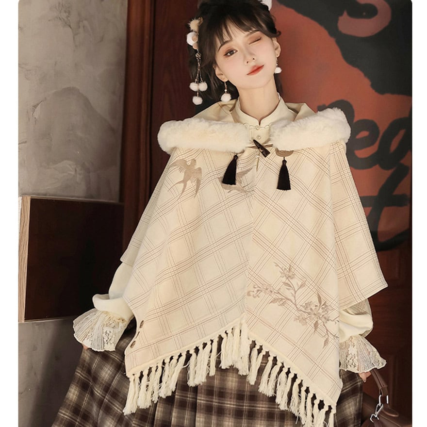 関連キーワード: #ロリータ #クラロリ #森ガール #ケープ #ポンチョ #アウター #秋冬 #チェック柄 #刺繍 #ファー #可愛い #童話 #ナチュラル