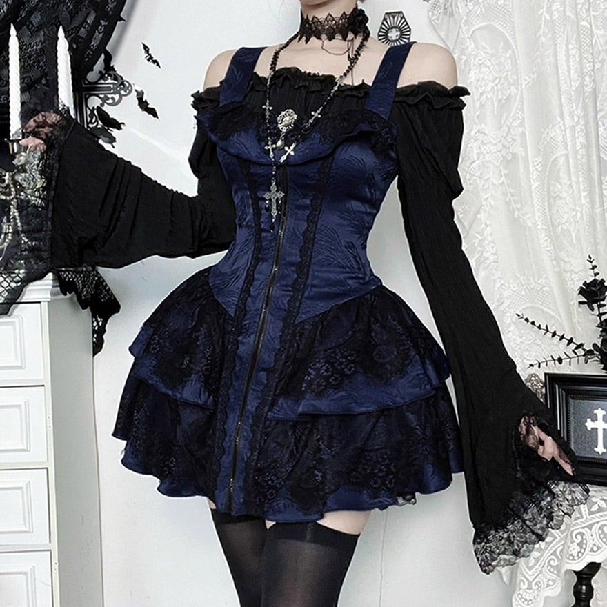 サブカル系 天使と悪魔 ゴスロリ 姫袖ブラウス ダーク ネイビー イベント コンカフェ衣装