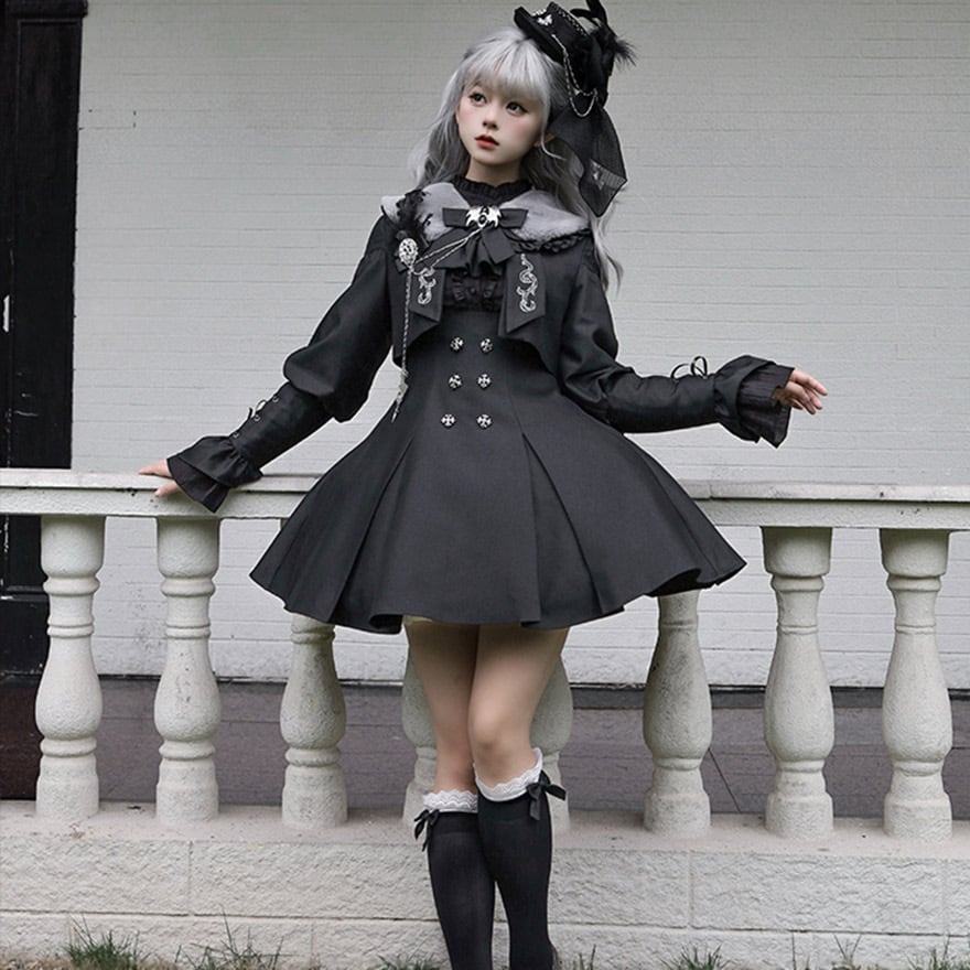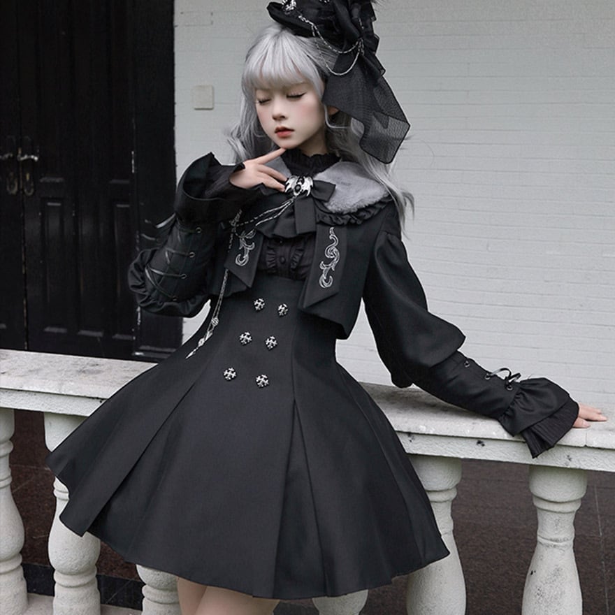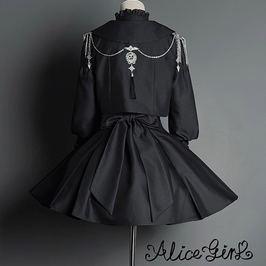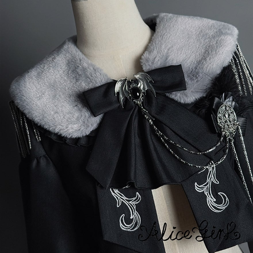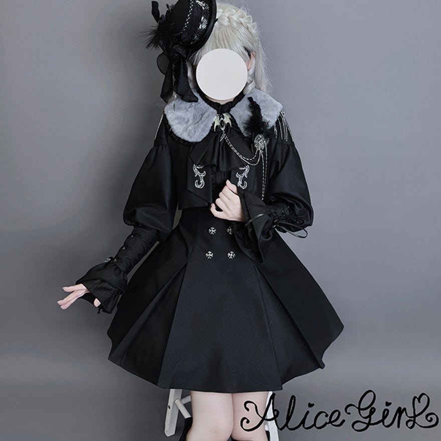 関連キーワード: #ゴスロリ #ゴシック #ジャケット #王子系 #軍服ロリィタ #執事 #ショート丈 #チェーン #ファー #黒
