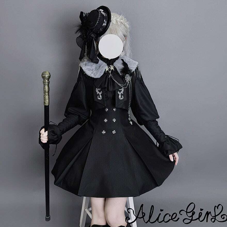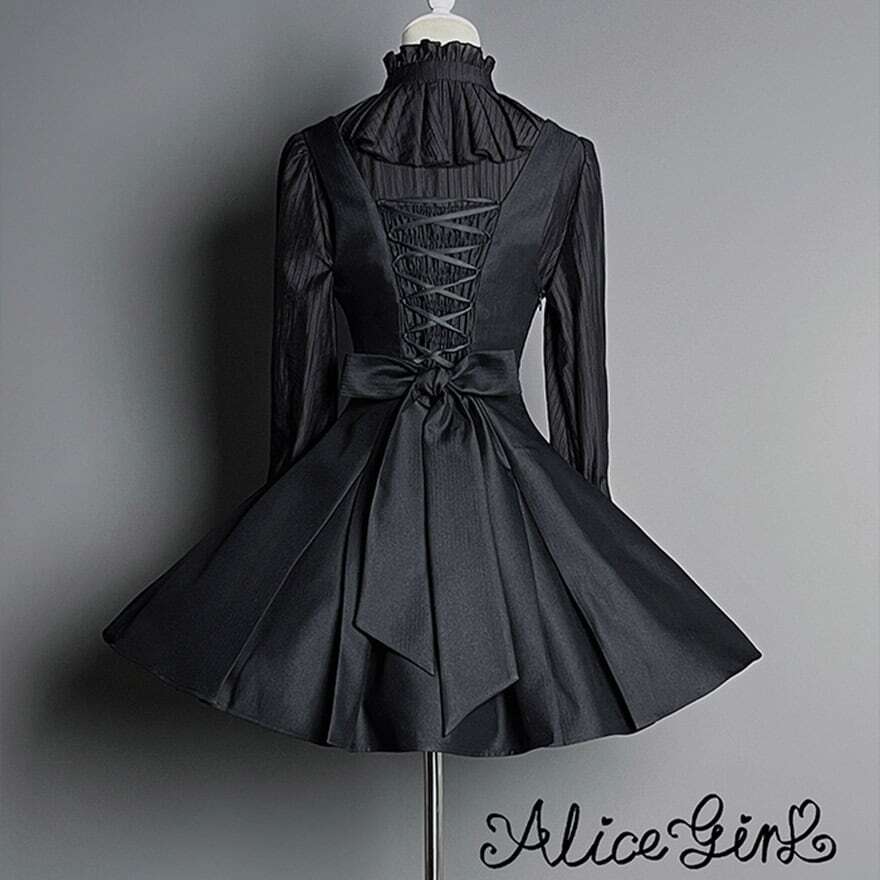 フリルたっぷりのブラウスを合わせれば王道のゴシック・ロリータスタイルに、シンプルなシャツを合わせればクールな執事風スタイルにと、インナー次第で様々な表情を見せてくれます。
