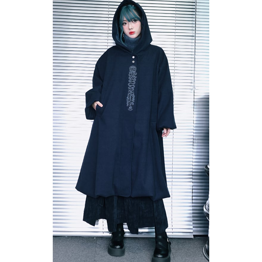 関連キーワード: #中華ゴス #ゴシック #サブカル #コート #アウター #ロングコート #刺繍 #フード #Aライン #個性的 #古怪舎