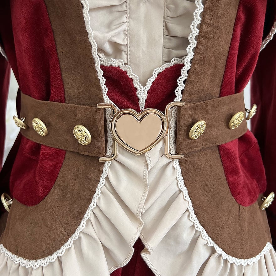 深みのあるレッドとブラウンを基調とした、高貴な印象の王子系セットアップです。
