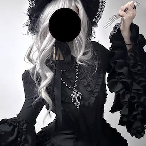 関連キーワード: #ゴスロリ #ゴシック #ロリータファッション #シャツ #ブラウス #姫袖 #レースアップ #フリル #黒 #貴族 #地雷系 #サブカル #闇かわいい