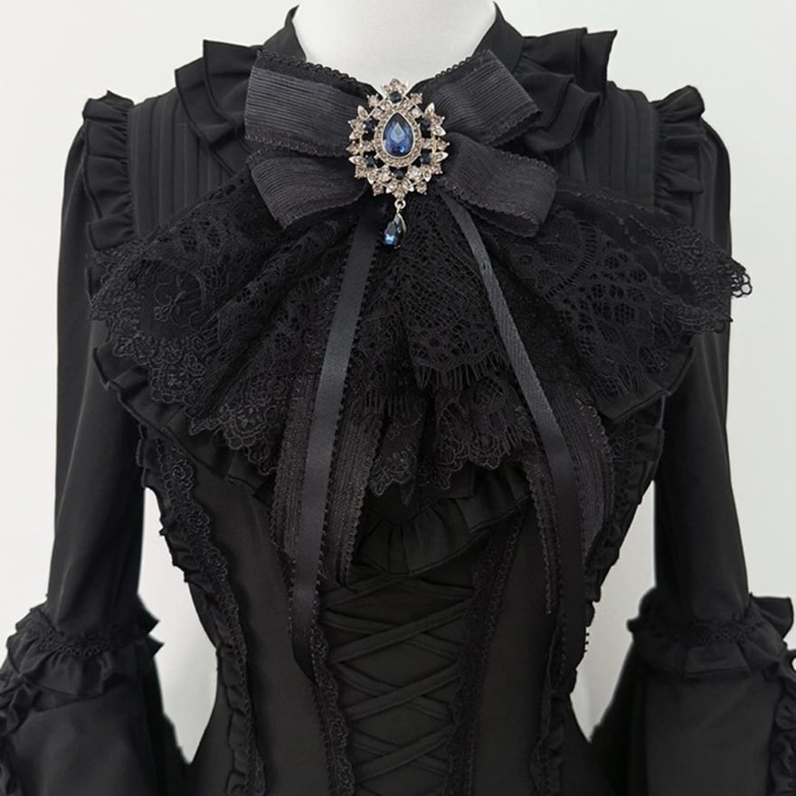 サブカル系ゴシック 地雷系 姫袖シャツ 黒シャツ ネックリボン付き ゴスロリファッション