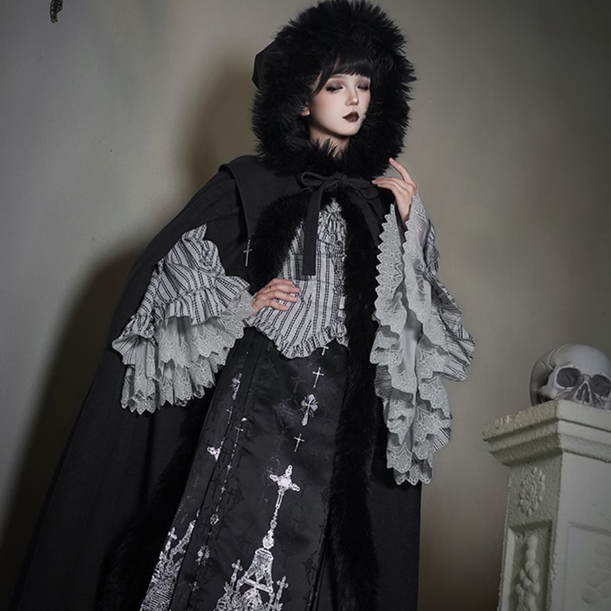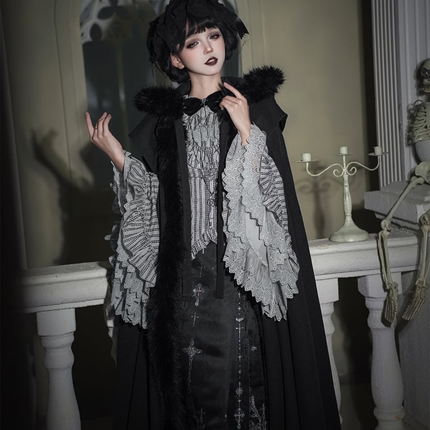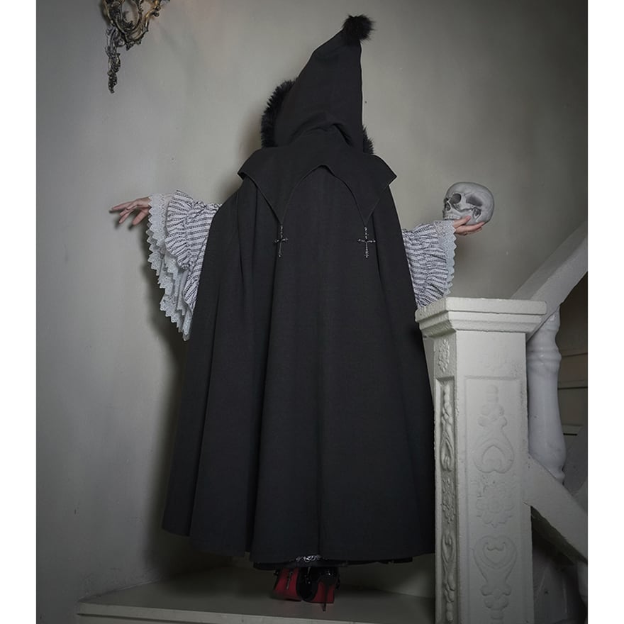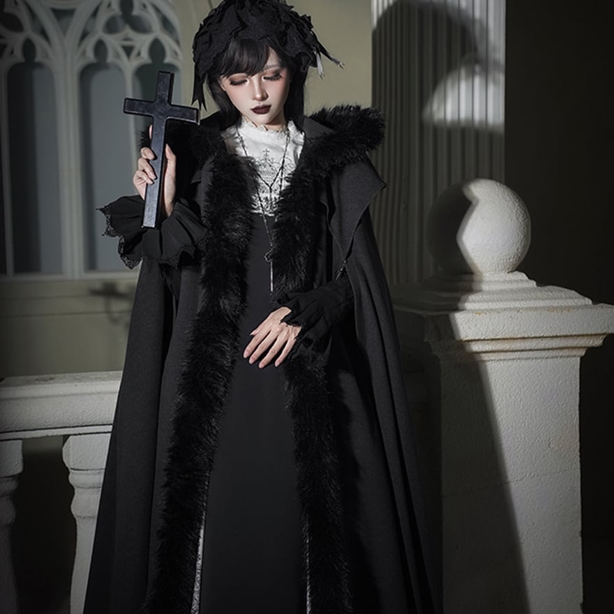 関連キーワード: #ゴスロリ #ロリータファッション #ケープ #マント #アウター #黒 #ファー #フード付き #ゴシック #闇かわいい #秋冬 #クラシカル #十字架