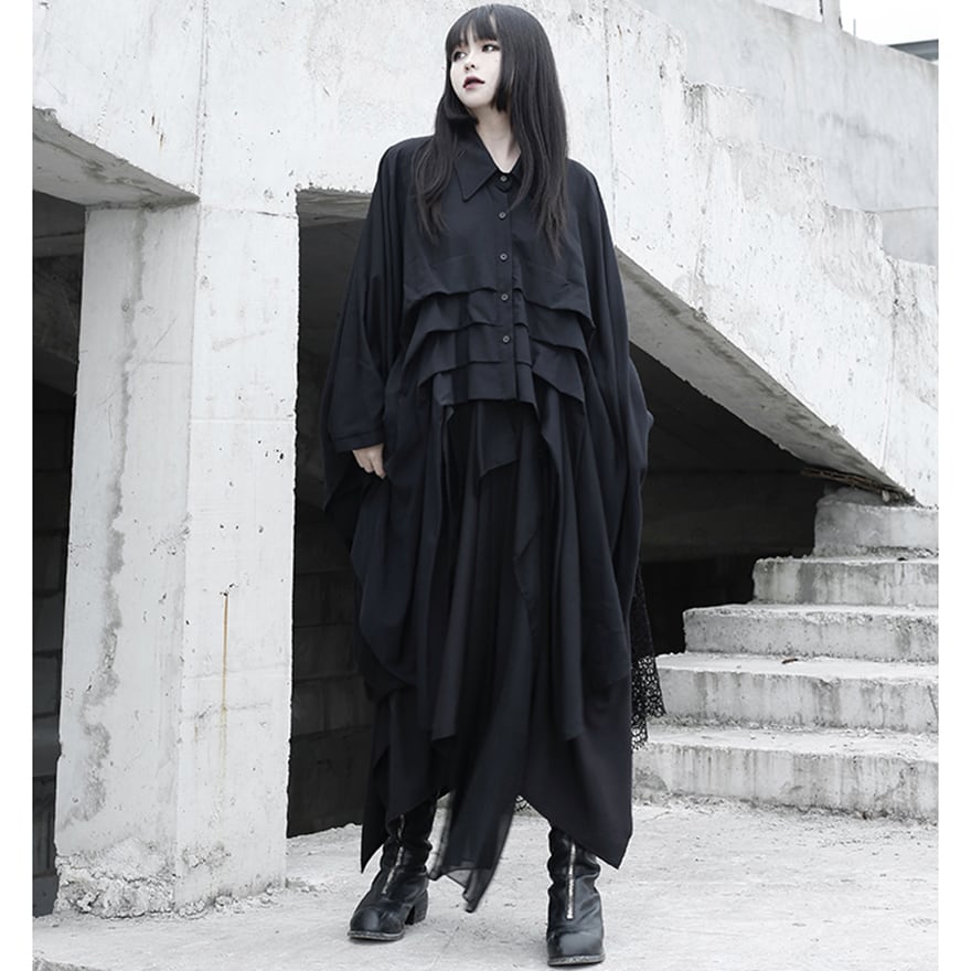 関連キーワード: #ゴスロリ #ゴシック #モード系 #シャツ #アシンメトリー #変形トップス #黒 #ドレープ #個性的 #ストリートファッション #ダークファッション