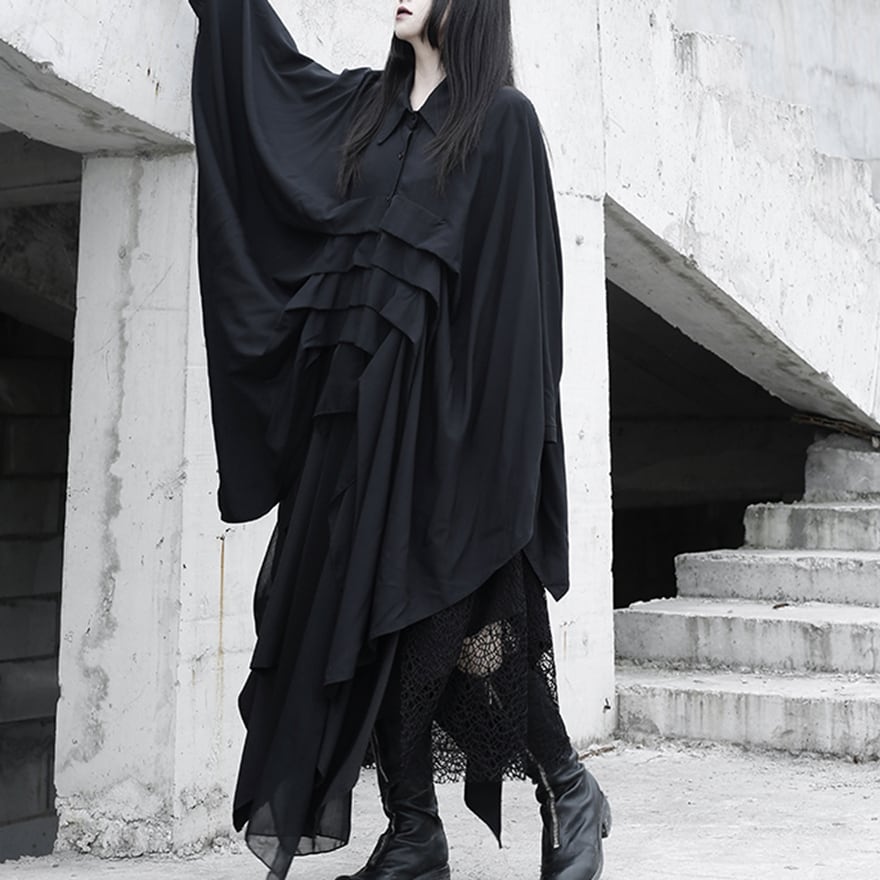 ゴスロリ シャツワンピ アシンメトリー 大人 こなれ感 ダークファッション ストリートファッション