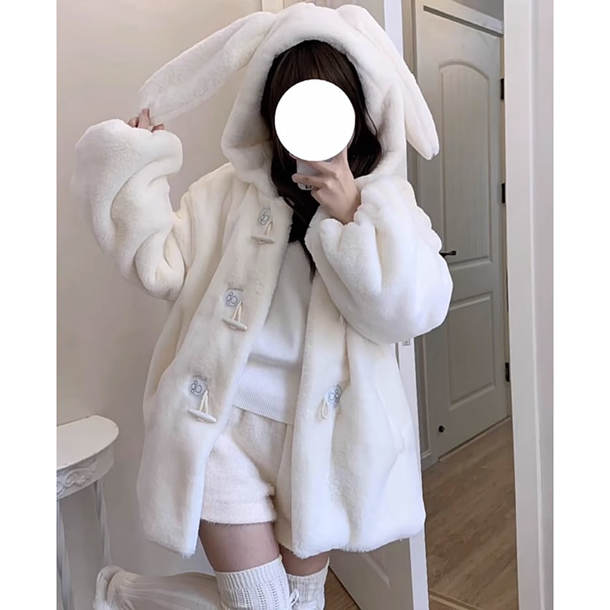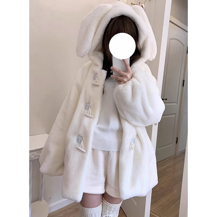 夢かわいい うさぎ耳 ふわふわ ファーコート ジャケット
