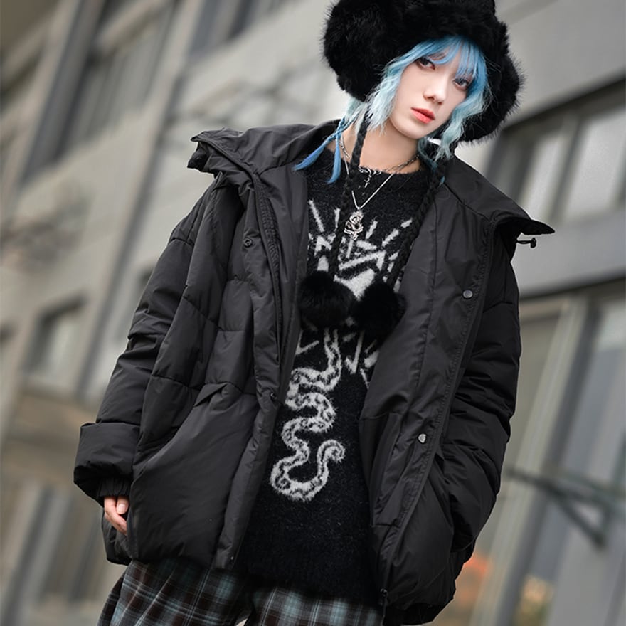 関連キーワード: #サブカル系 #ストリートファッション #ダウンジャケット #アウター #オーバーサイズ #スタンドカラー #防寒 #ユニセックス #古怪舎