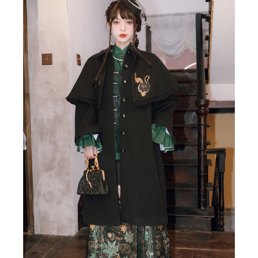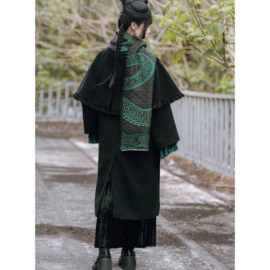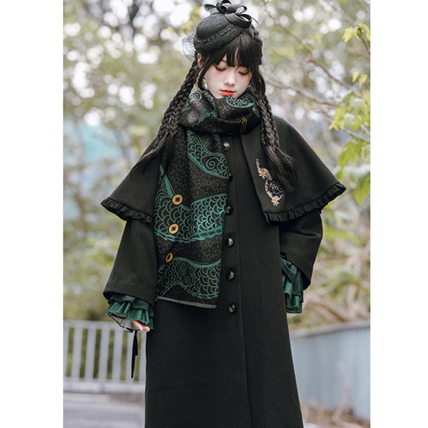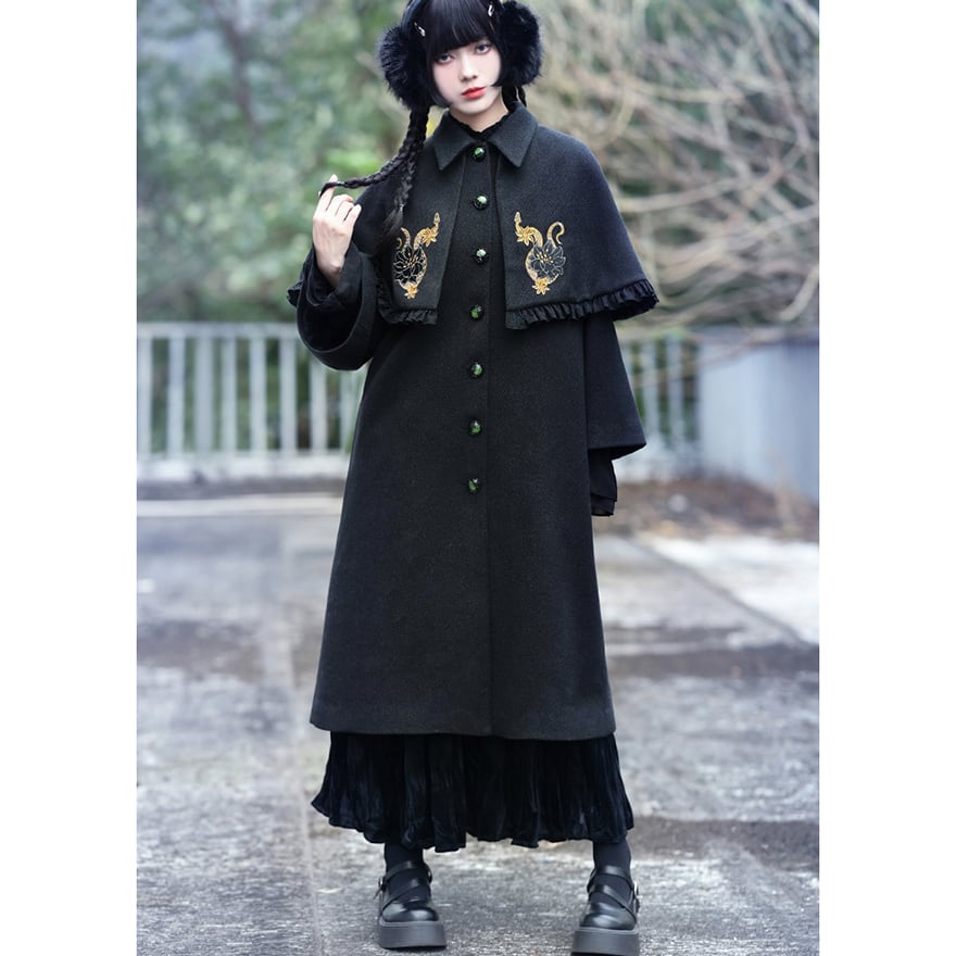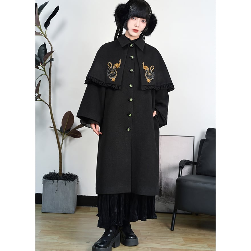 関連キーワード: #サブカル系 #ケープコート #アウター #ツーピース #刺繍 #龍 #ドラゴン #中華風 #ゴシック #モード系 #黒 #古怪舎