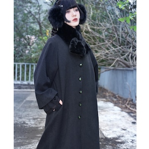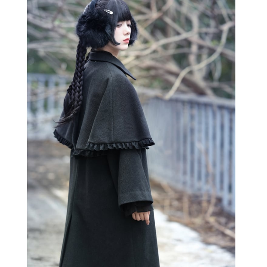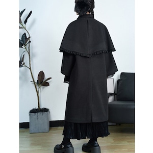 上品なロングコートと、存在感のあるケープがセットになったツーピース仕様のコートです。