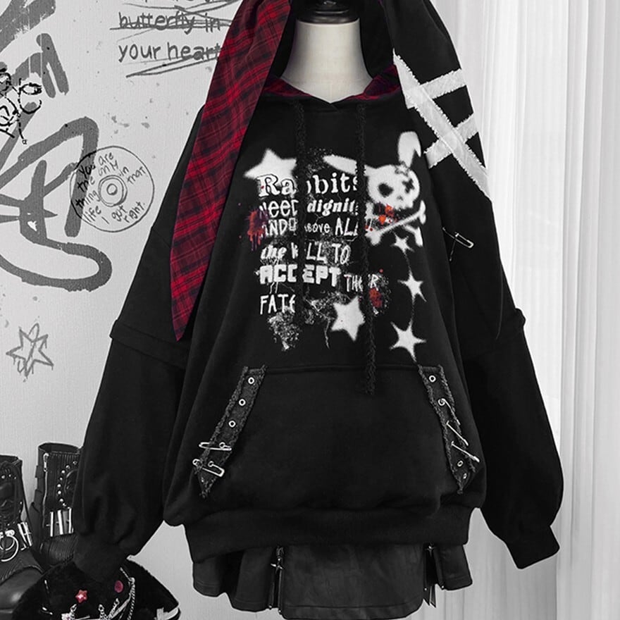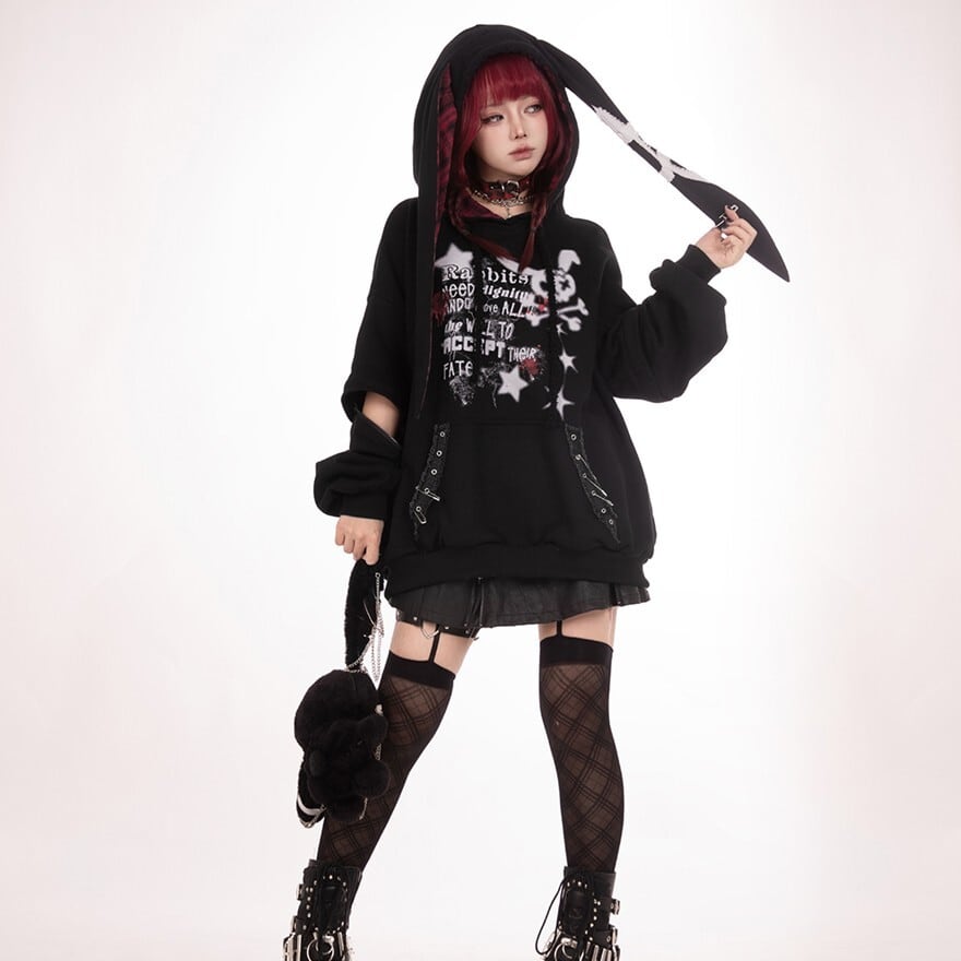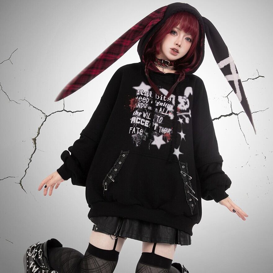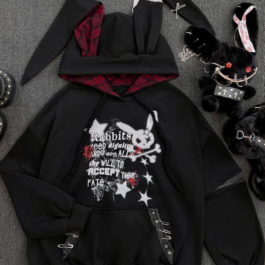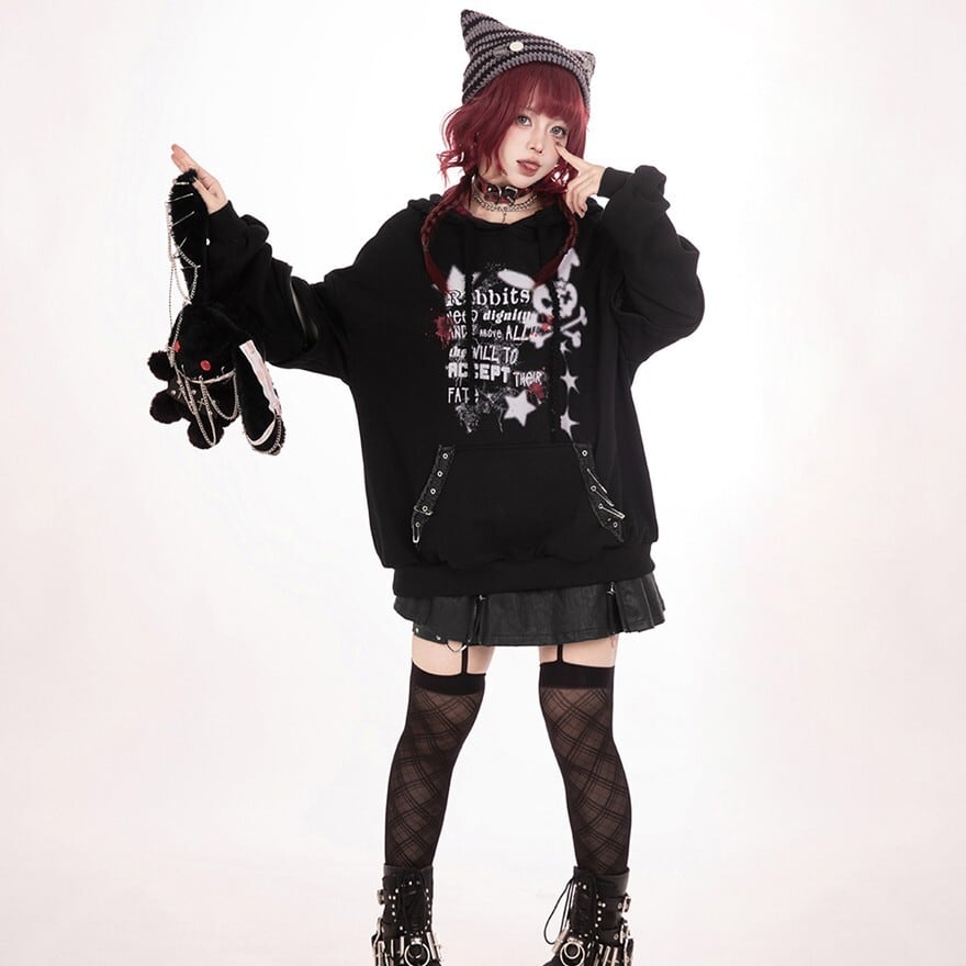 関連キーワード: #フーディ #パーカー #地雷系 #病みかわ #サブカル #ウサギ耳 #オーバーサイズ #プリント #パンク #ストリート #うさぎ