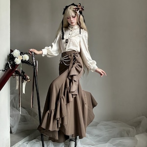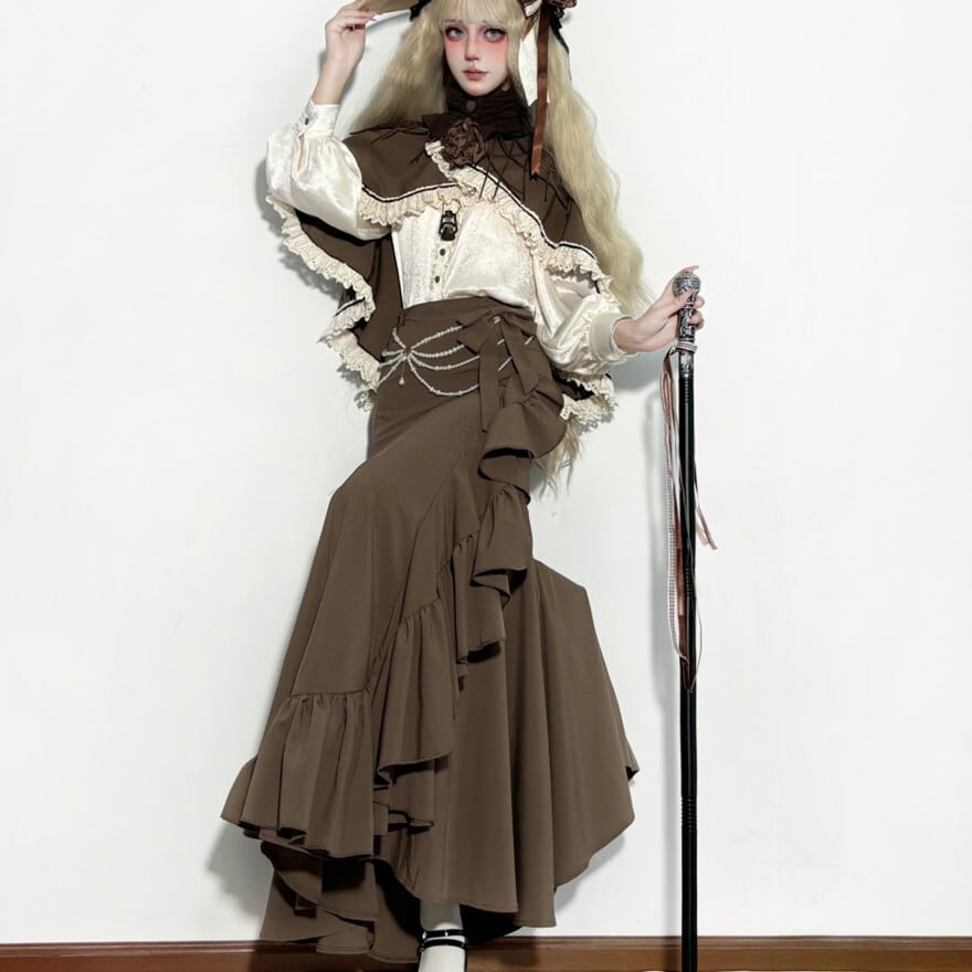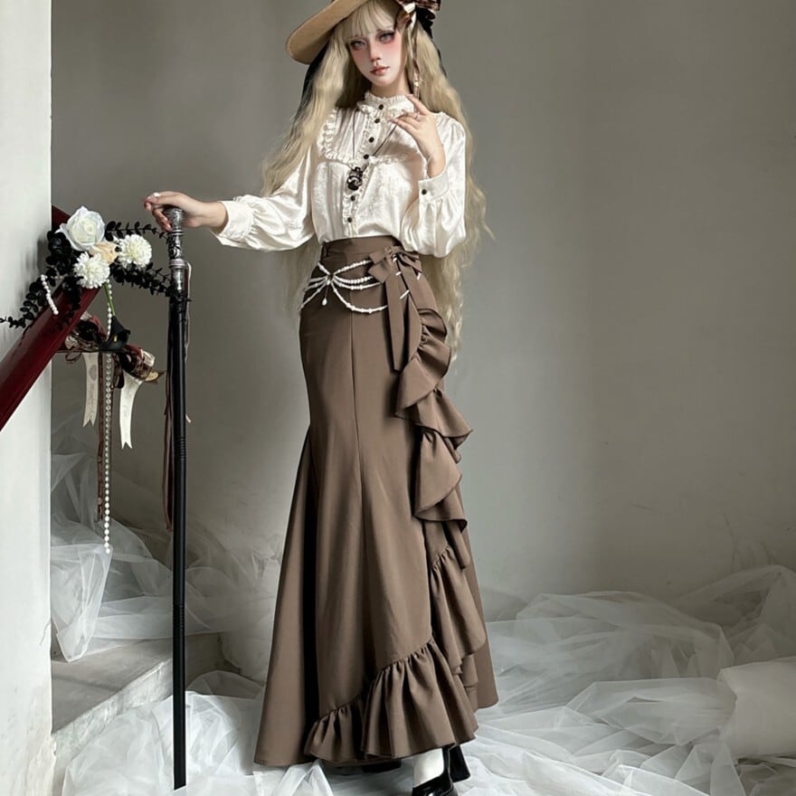 関連キーワード: #ロリータ #クラロリ #スカート #ブラウン #フリル #エレガント #シック #マーメイド #ロング丈