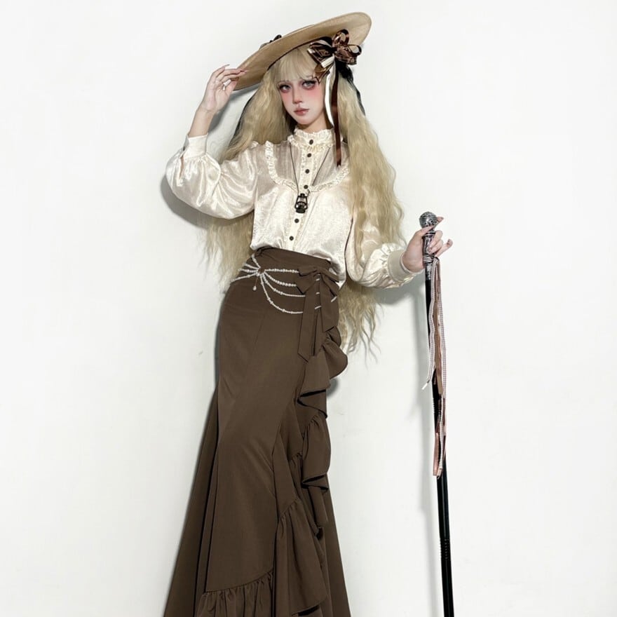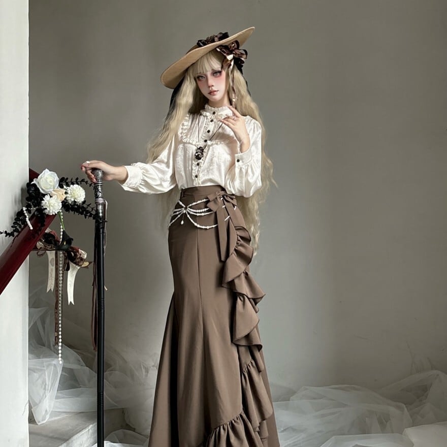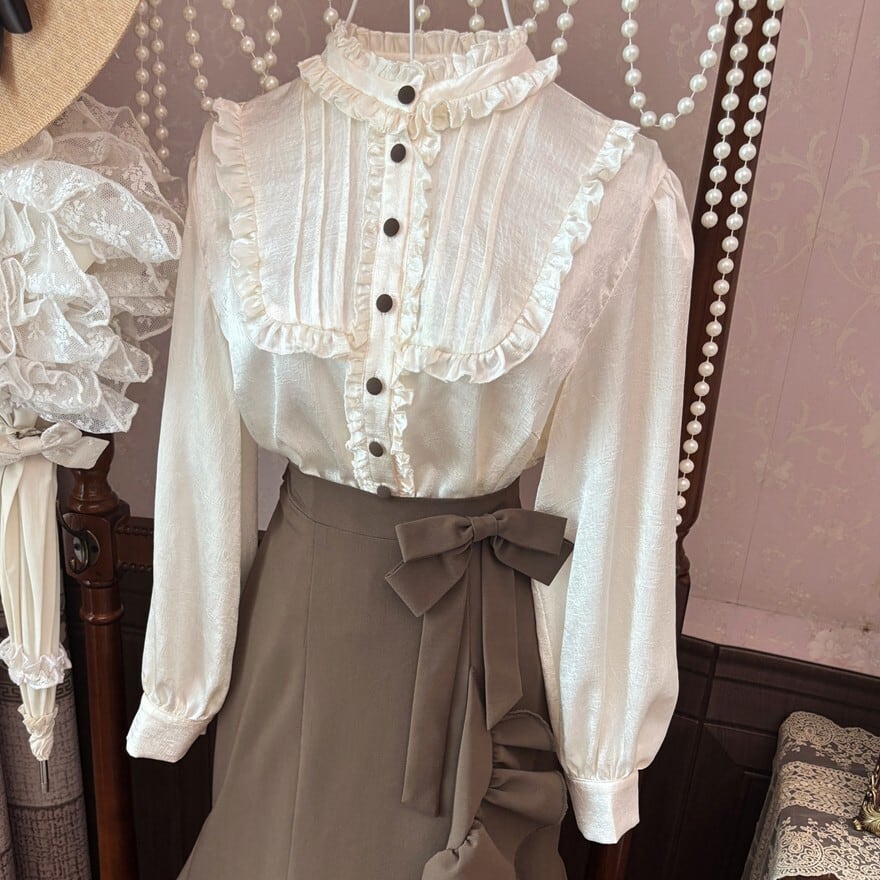 関連キーワード: #ロリータ #クラロリ #ブラウス #フリル #ピンタック #エレガント #シック #可愛い #オフホワイト