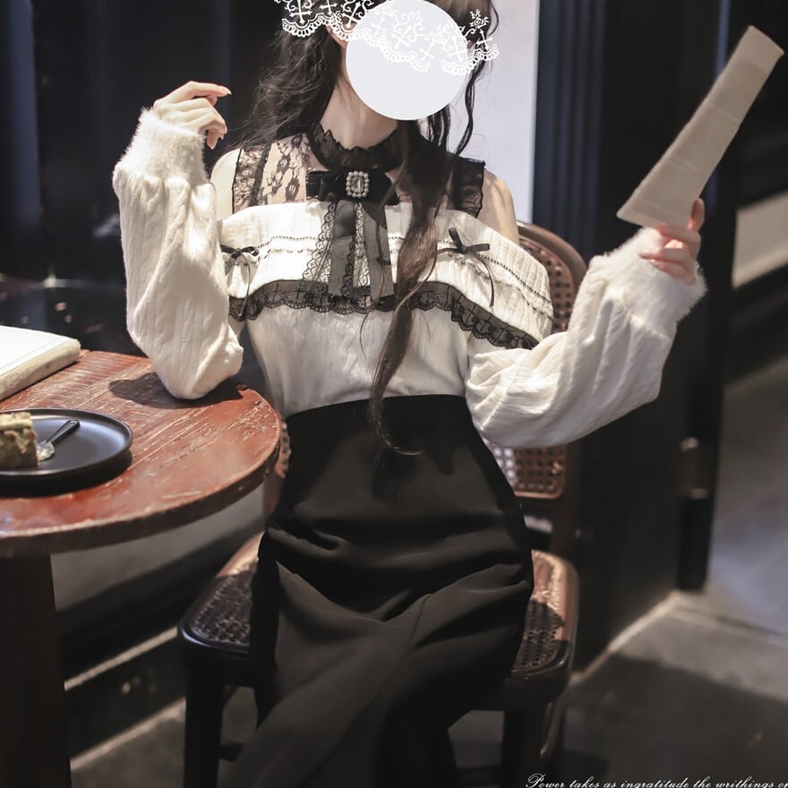 量産型ロリィタ クラロリ オフショル ニット レース ブラウス エレガント 胡桃木