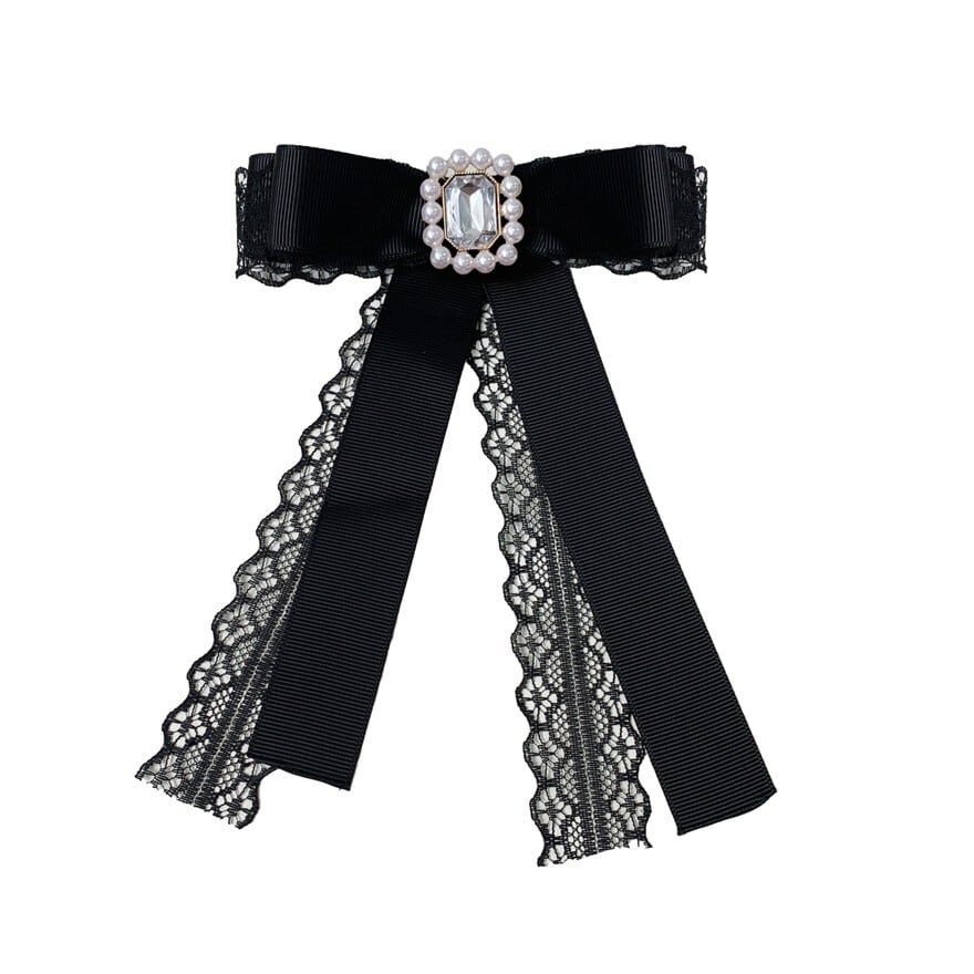 シックな装いに華やかさをプラスする、レースとビジューが魅力的なリボンブローチ。