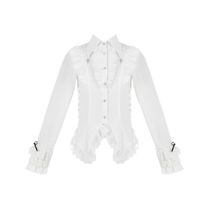クラシカルなデザインのJSKとブラウスをベースに、ミステリアスなエプロンと付属品を合わせることで、個性的なゴシックロリータスタイルが完成します。