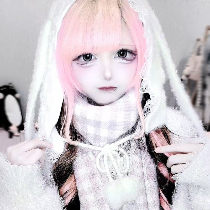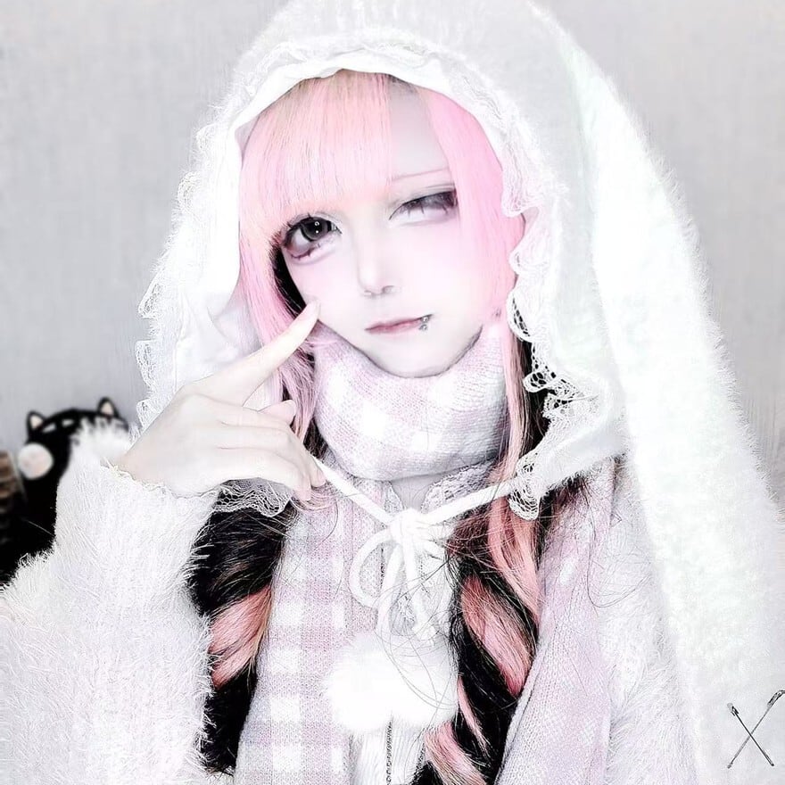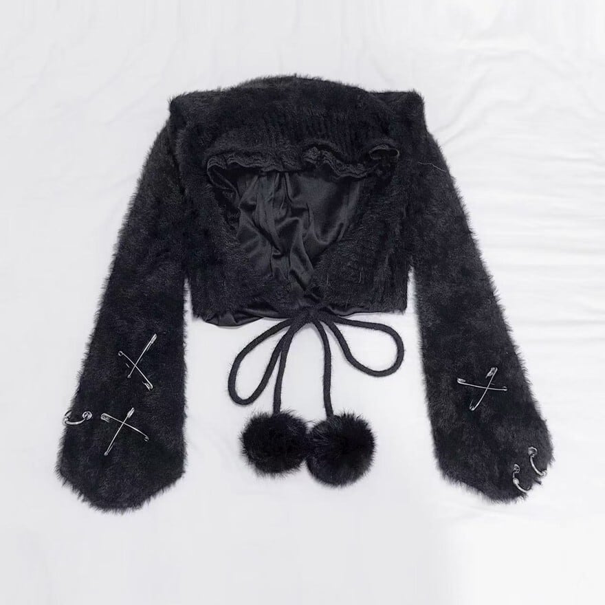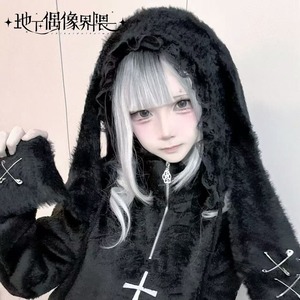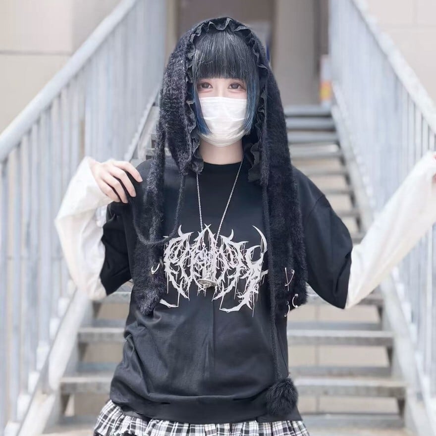 関連キーワード: #うさ耳帽 #ファー #地雷系 #サブカル系 #ストリートファッション #モノトーン #安全ピン #ポンポン #甘辛ミックス